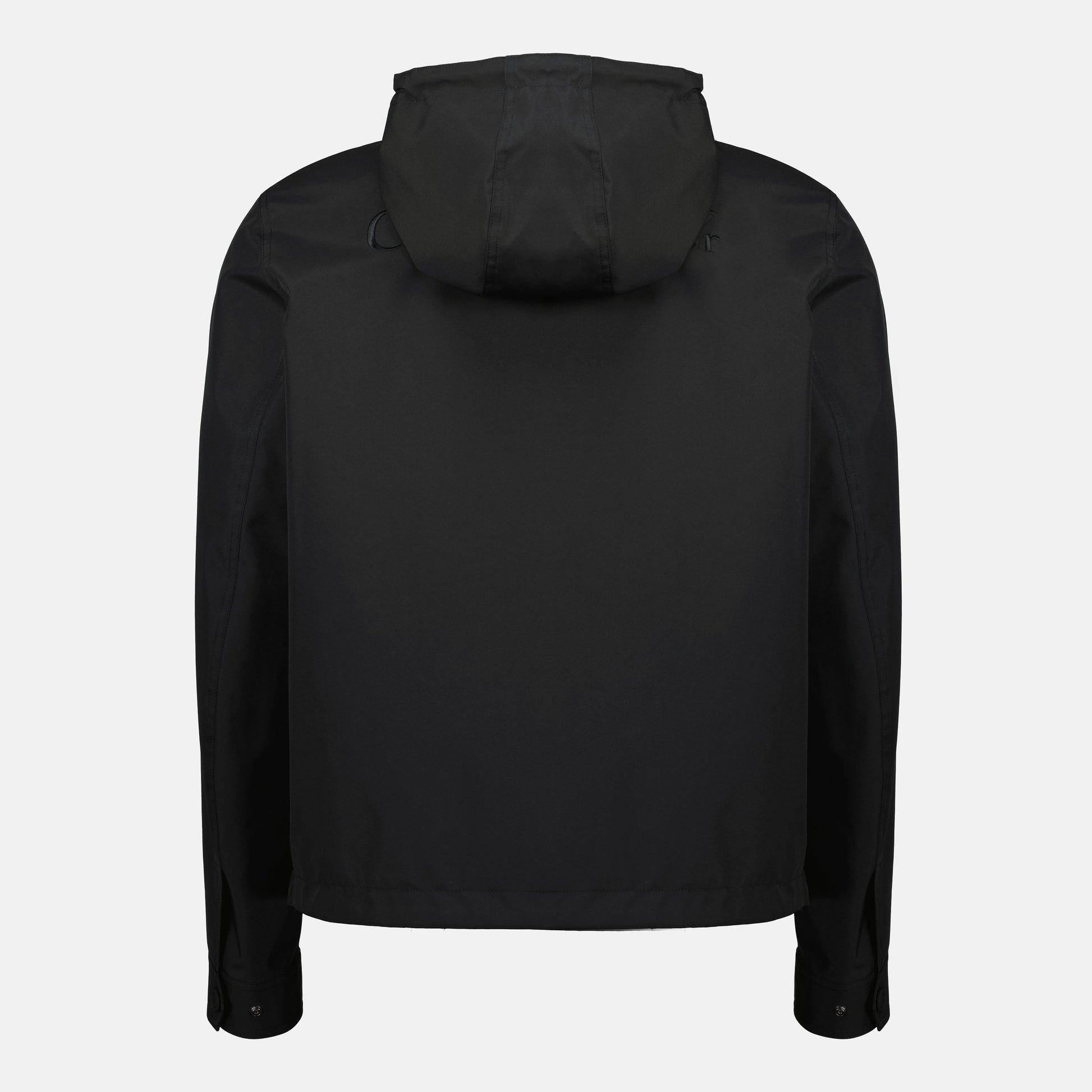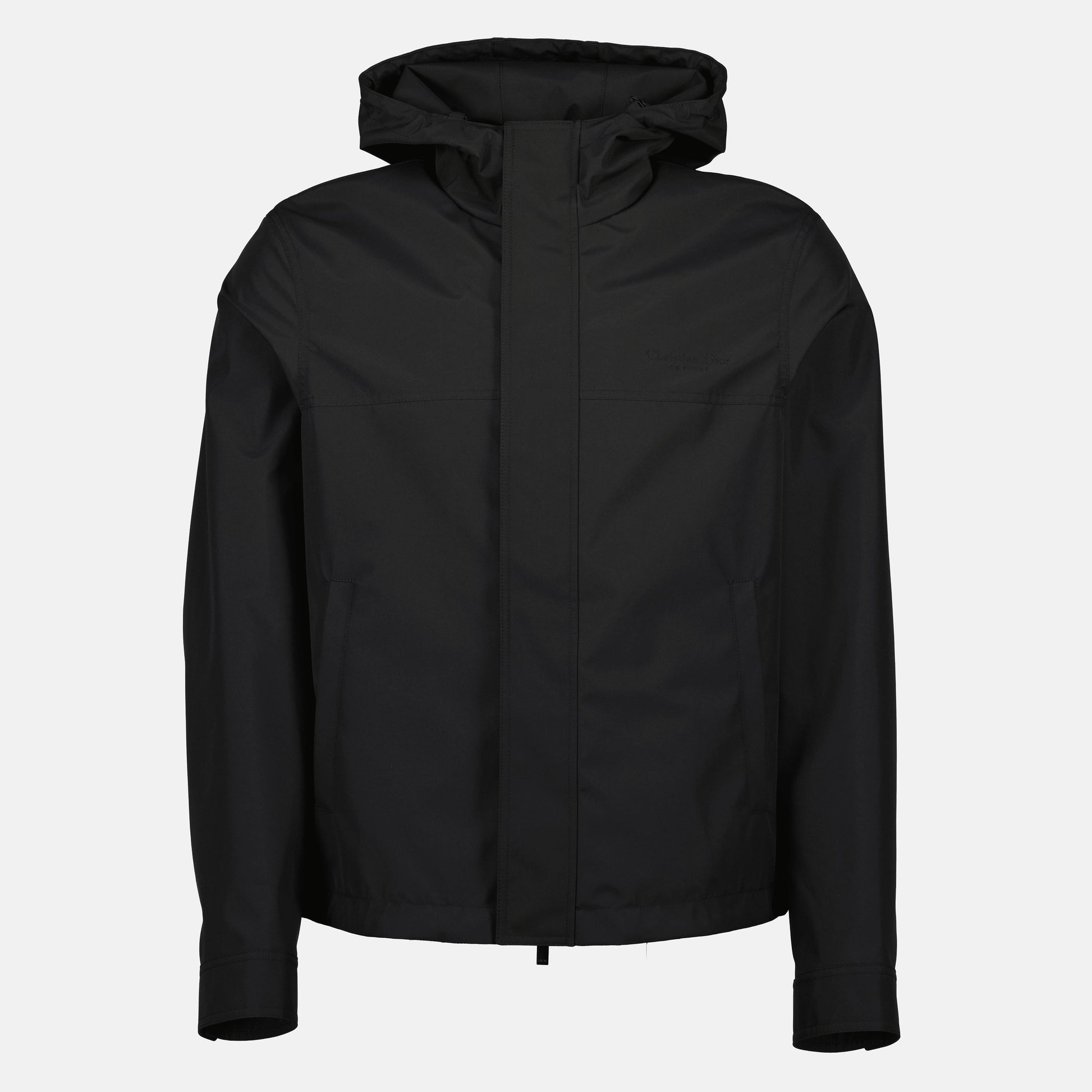 Black hooded jacket from Dior, designed for men, combines style and comfort with a straight cut and refined details. This piece is part of the Fall-Winter 2025 collection.