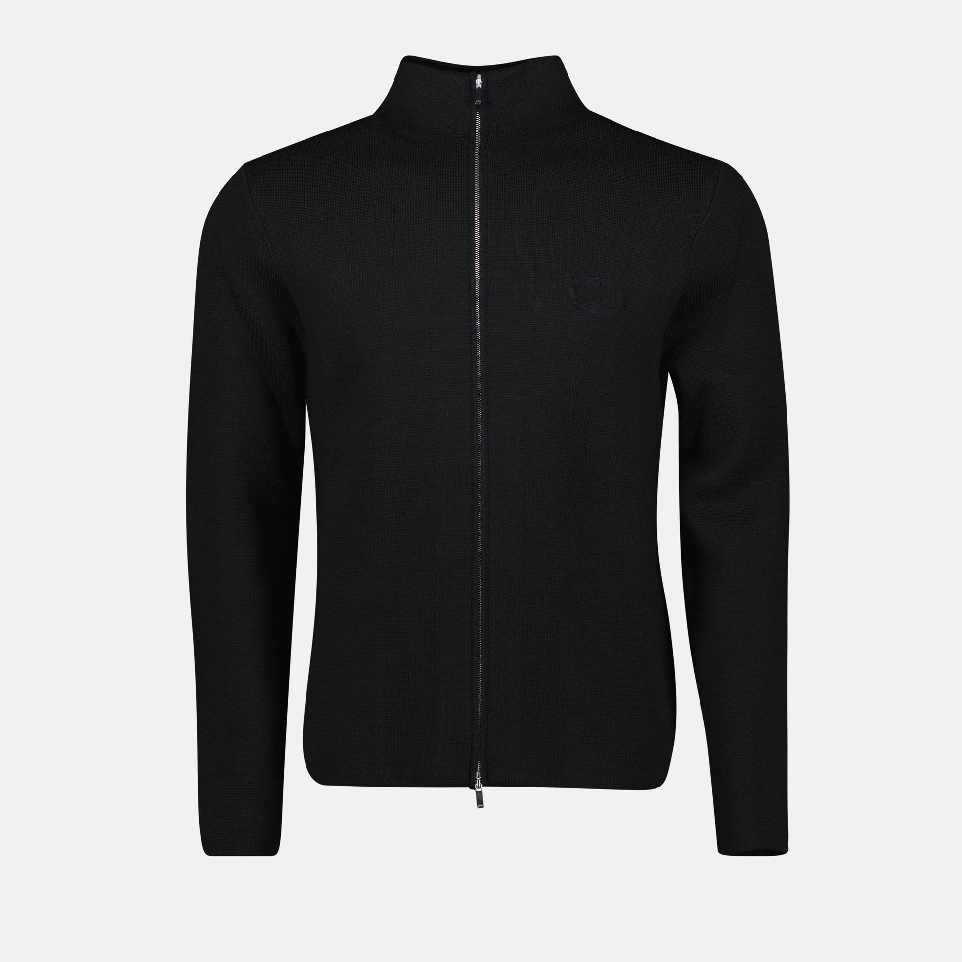 Icon wool sweater by Dior for men. This model is part of the Spring-Summer 2025 collection and stands out with its high collar and embroidered logo.