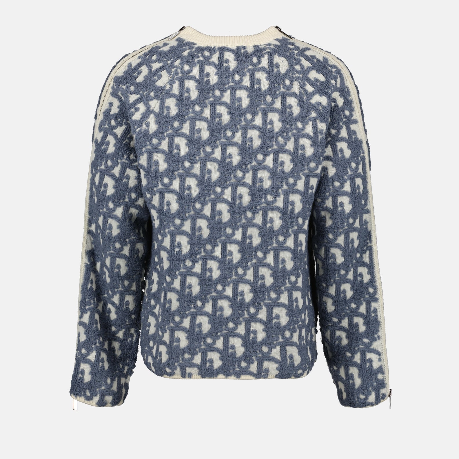 Pull Oblique Dior collection Automne-Hiver 2024 pour Homme. Réalisé en laine. Article de couleur Bleu. Col rond et Manches longues.