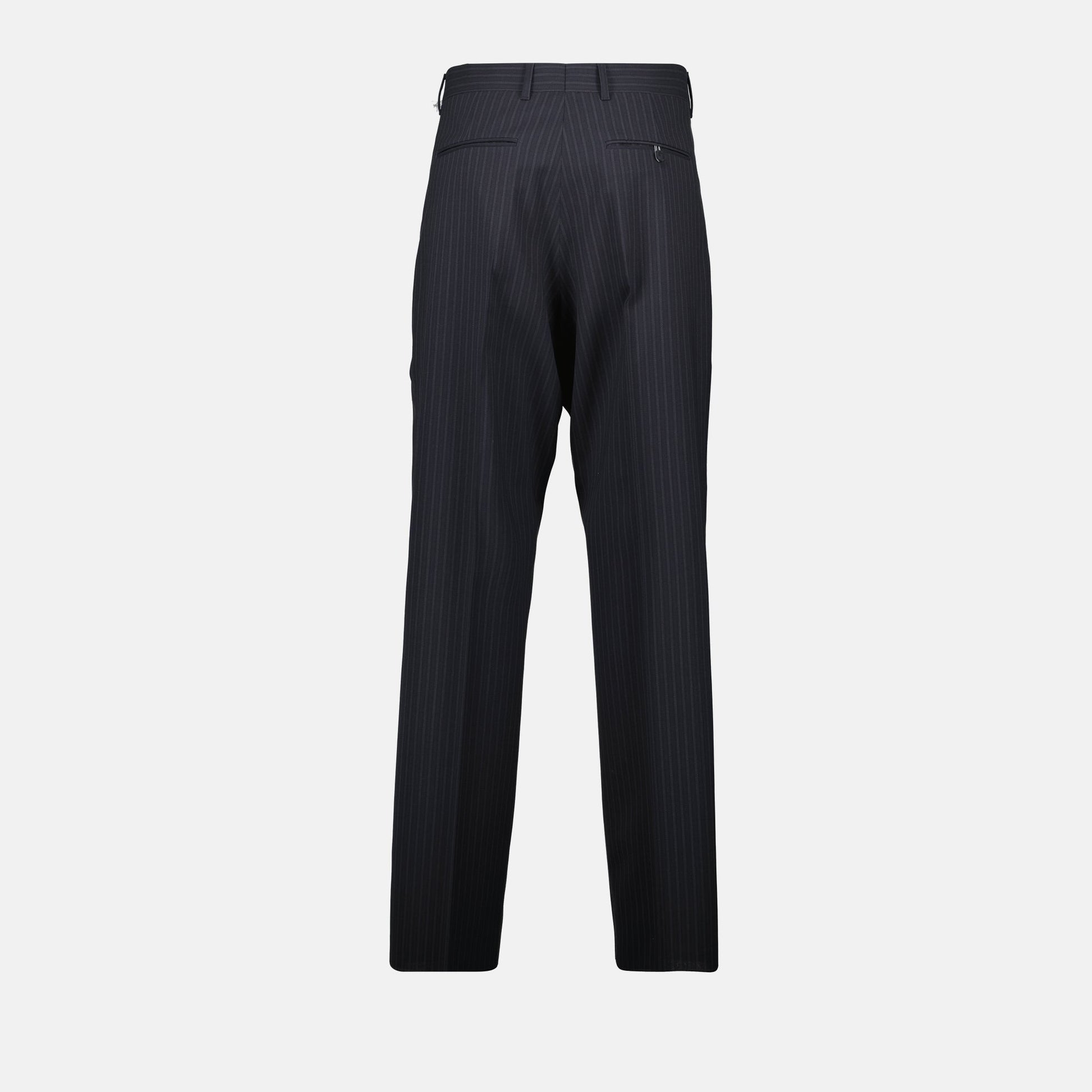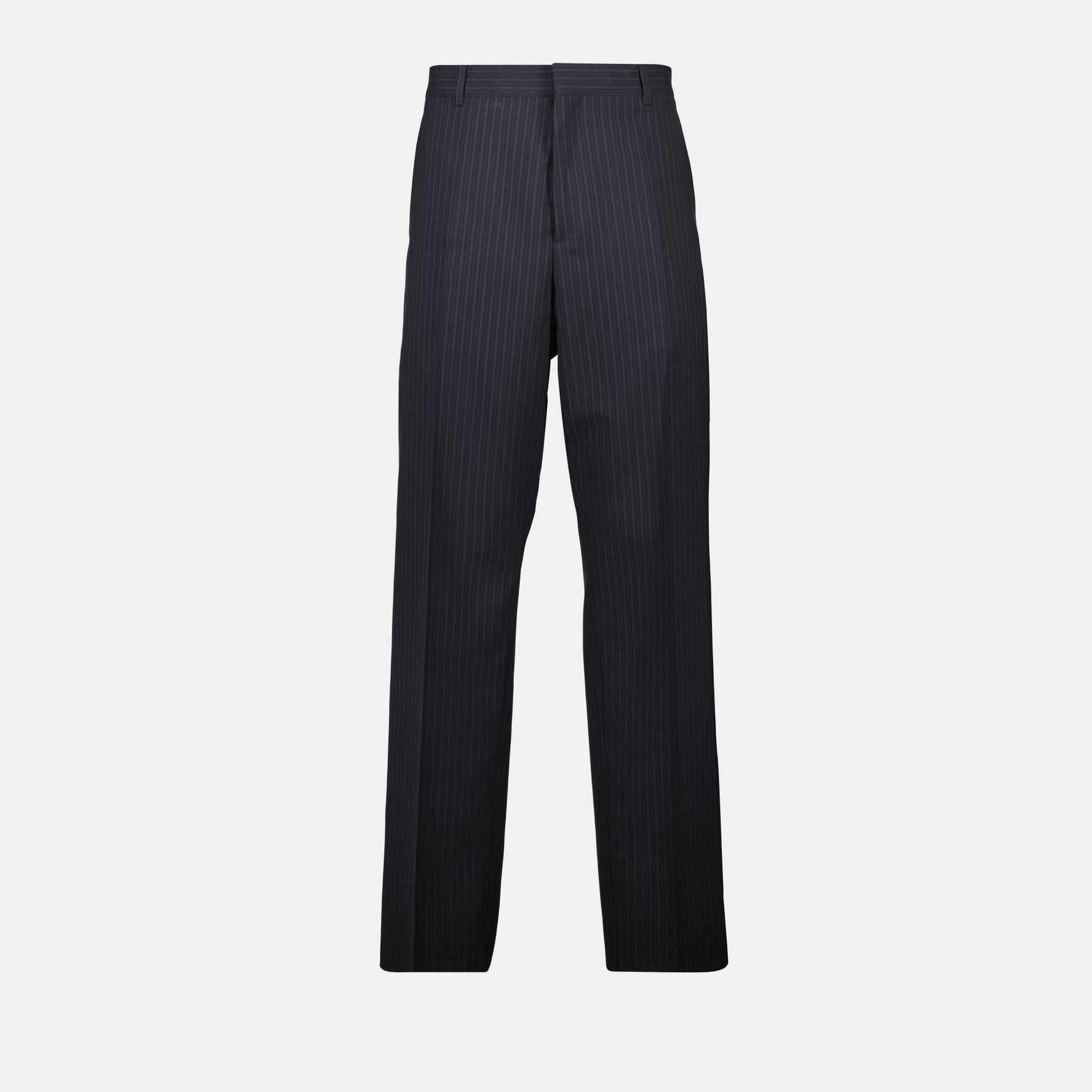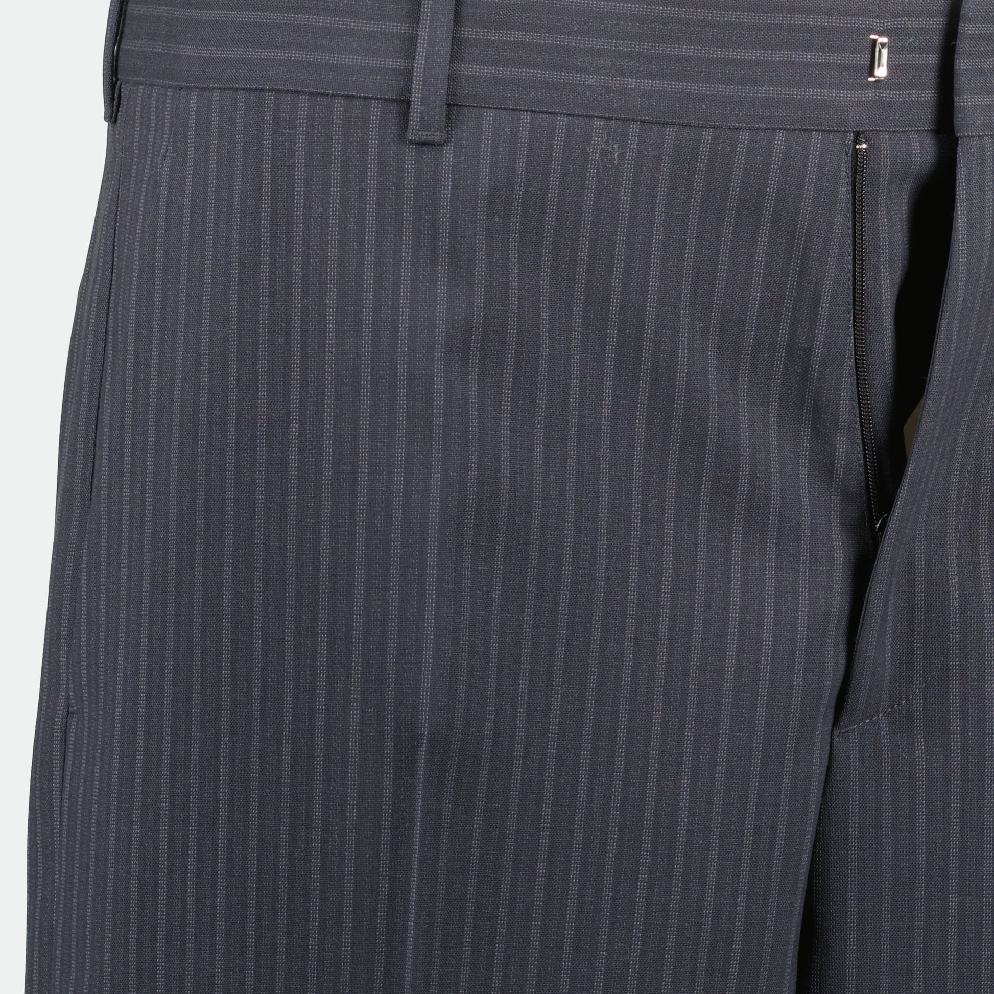 Striped pants made of wool canvas from Dior for men from the Spring-Summer 2025 collection. This model features a straight cut, side pockets, and a hook and zip closure.