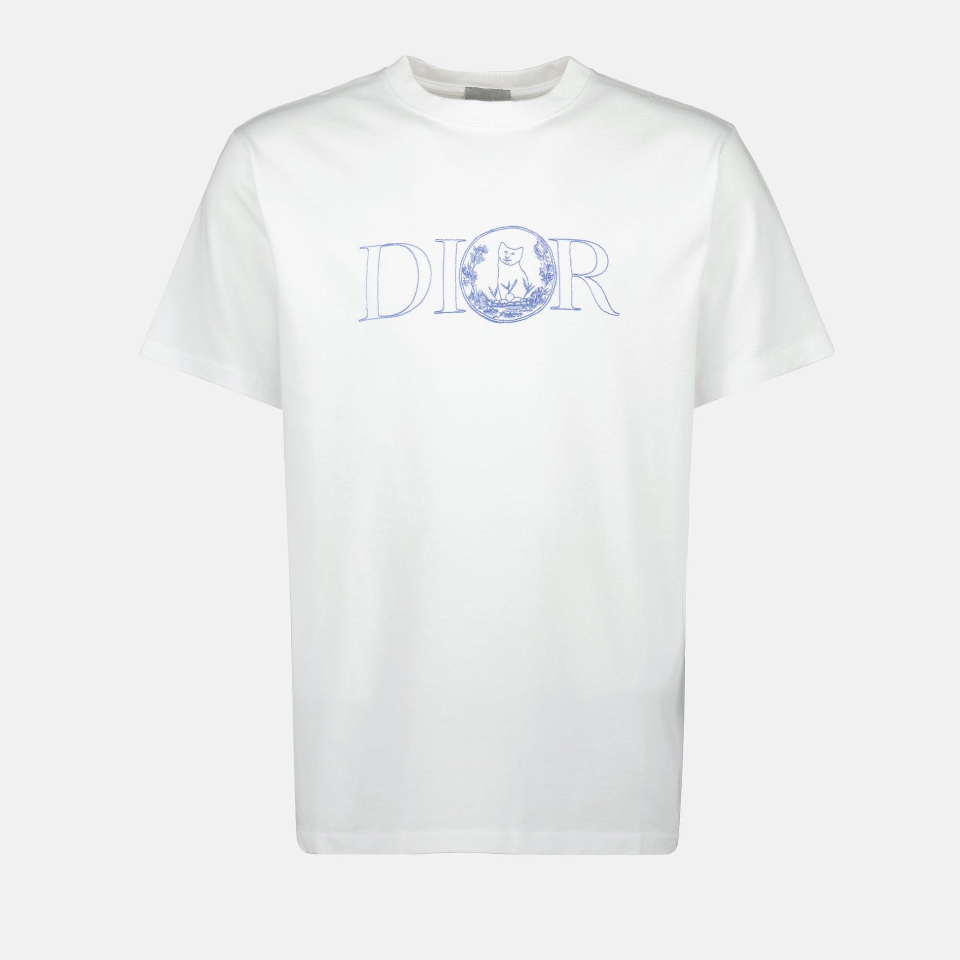 White Dior and Hylton Nel T-shirt for men from the Spring-Summer 2025 collection. Made of cotton jersey, it features a round neck, short sleeves, and an embroidered logo.