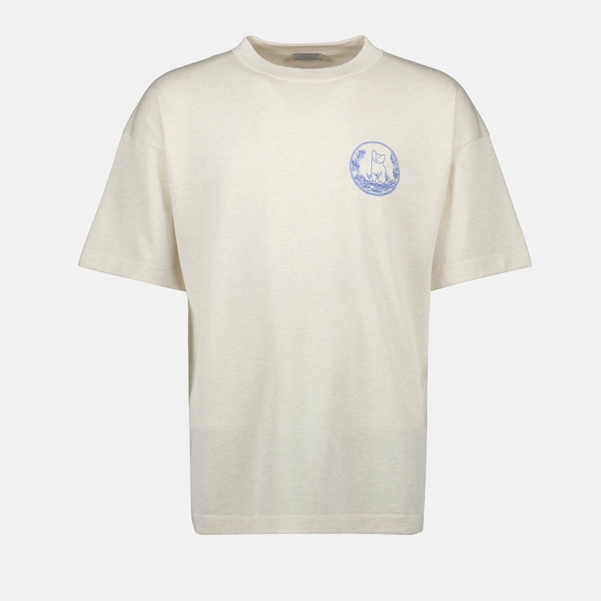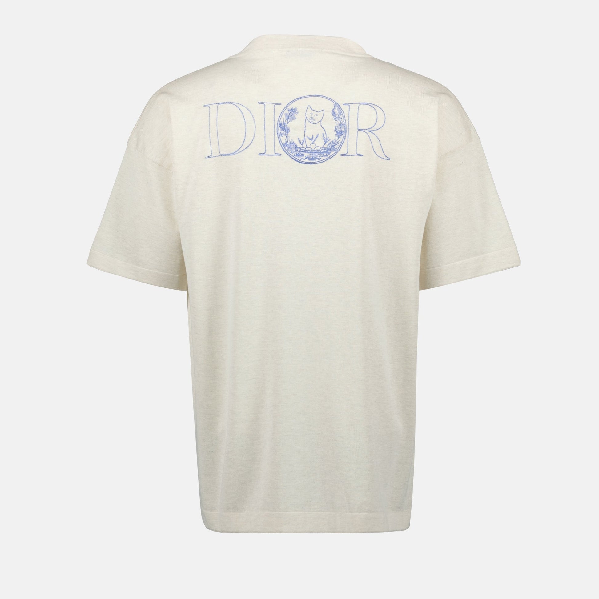 Beige Dior and Hylton Nel knit t-shirt for men. This piece is part of the Spring-Summer 2025 collection and features an embroidered logo on the chest.