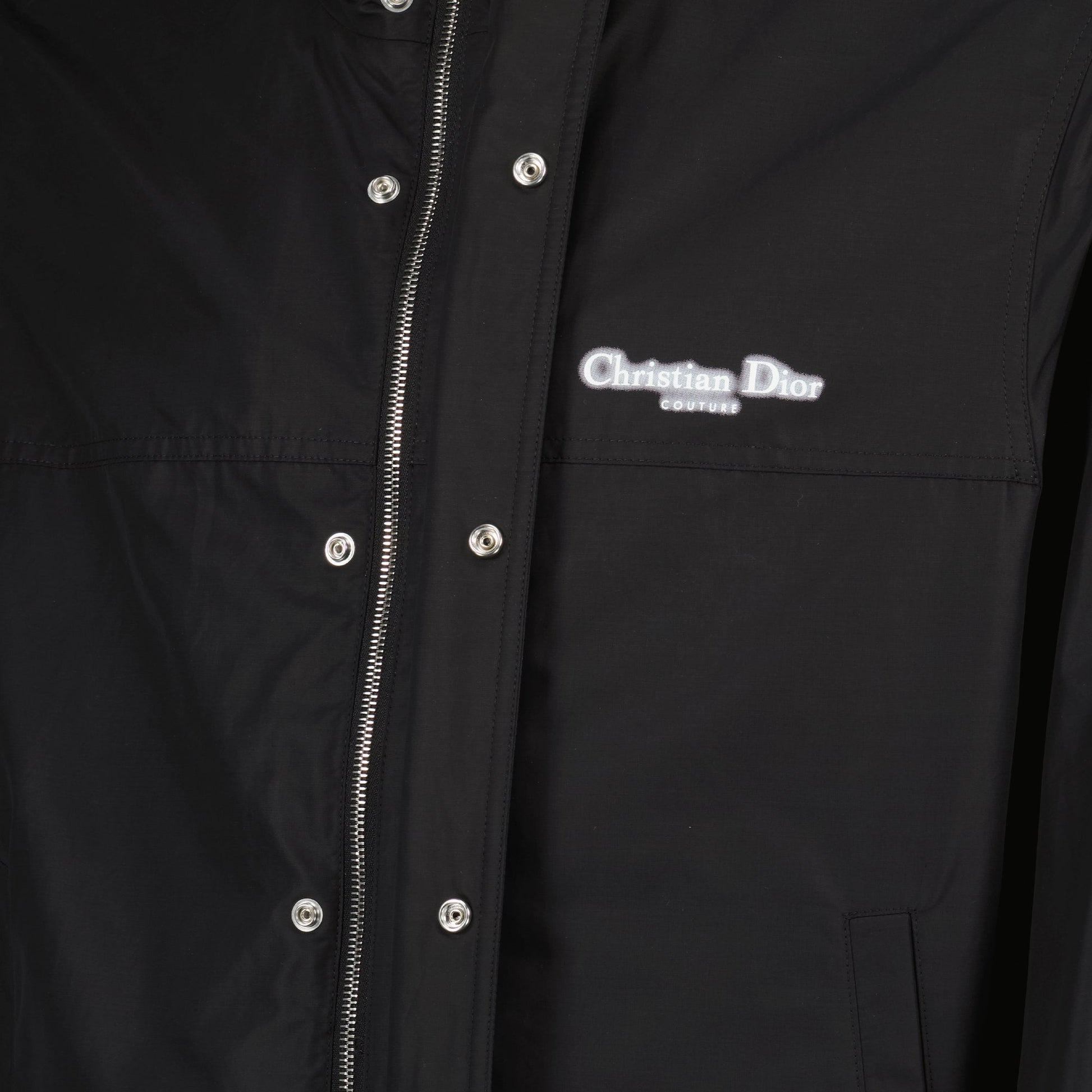 Couture windbreaker from the Dior Fall-Winter 2024 collection for Men. Made from water-repellent nylon. Item color black. High collar and long sleeves.