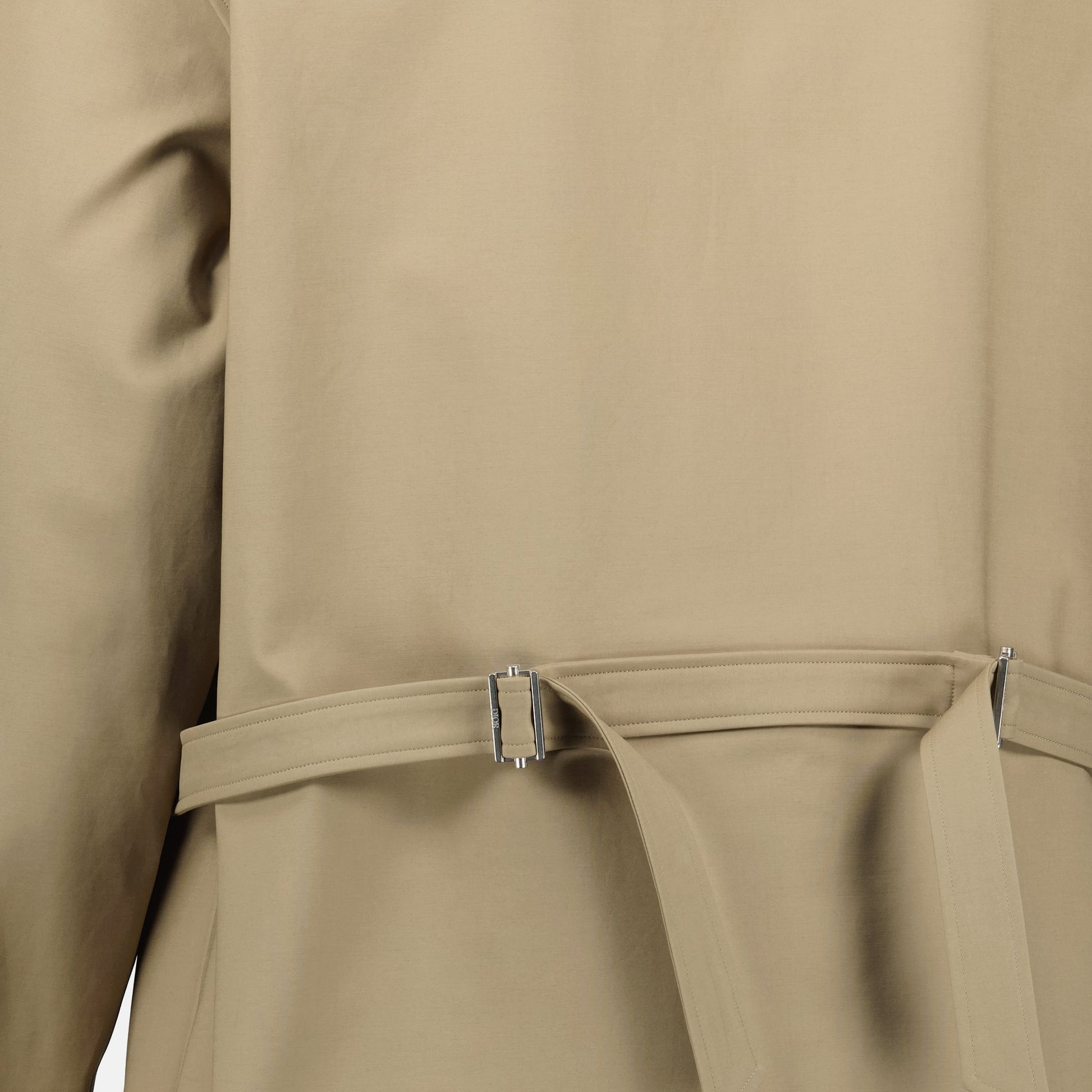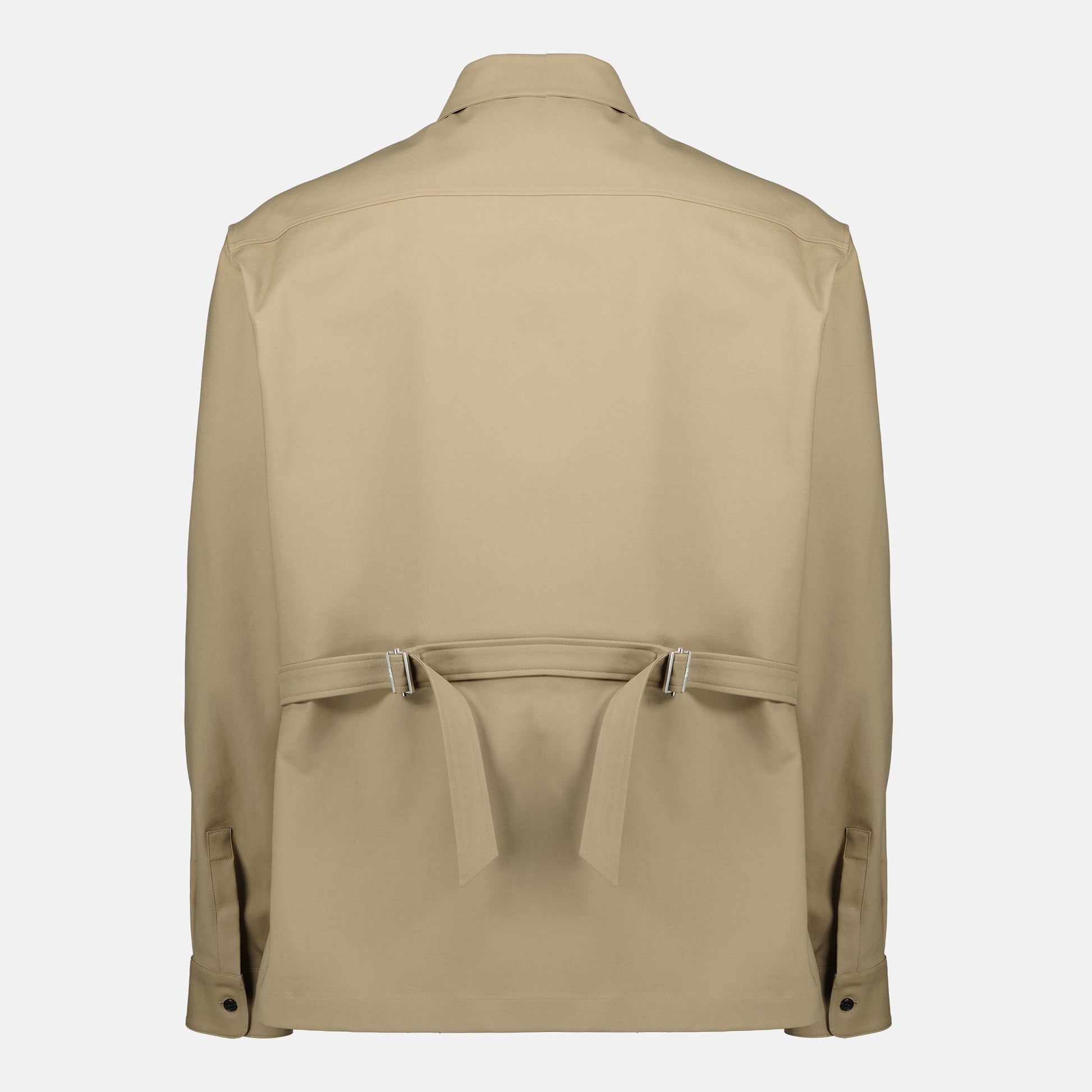 Veste en satin beige de la marque Dior, conçue pour homme. Cette pièce fait partie de la collection Automne-Hiver 2025 et présente une coupe droite avec des détails élégants.