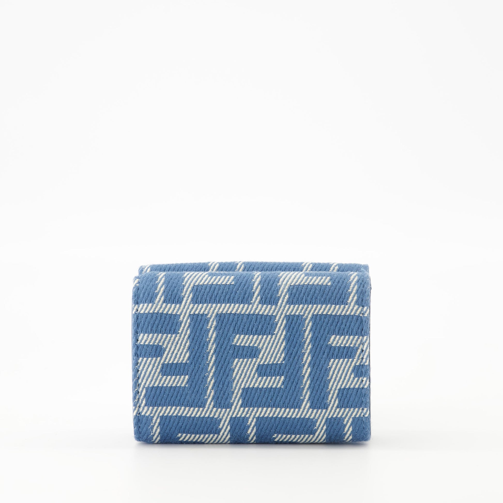 Baguette wallet in denim effect by Fendi, designed for women, combines elegance and functionality with its card slots and leather interior. Spring-Summer 2025 collection, it stands out for its washed blue color.