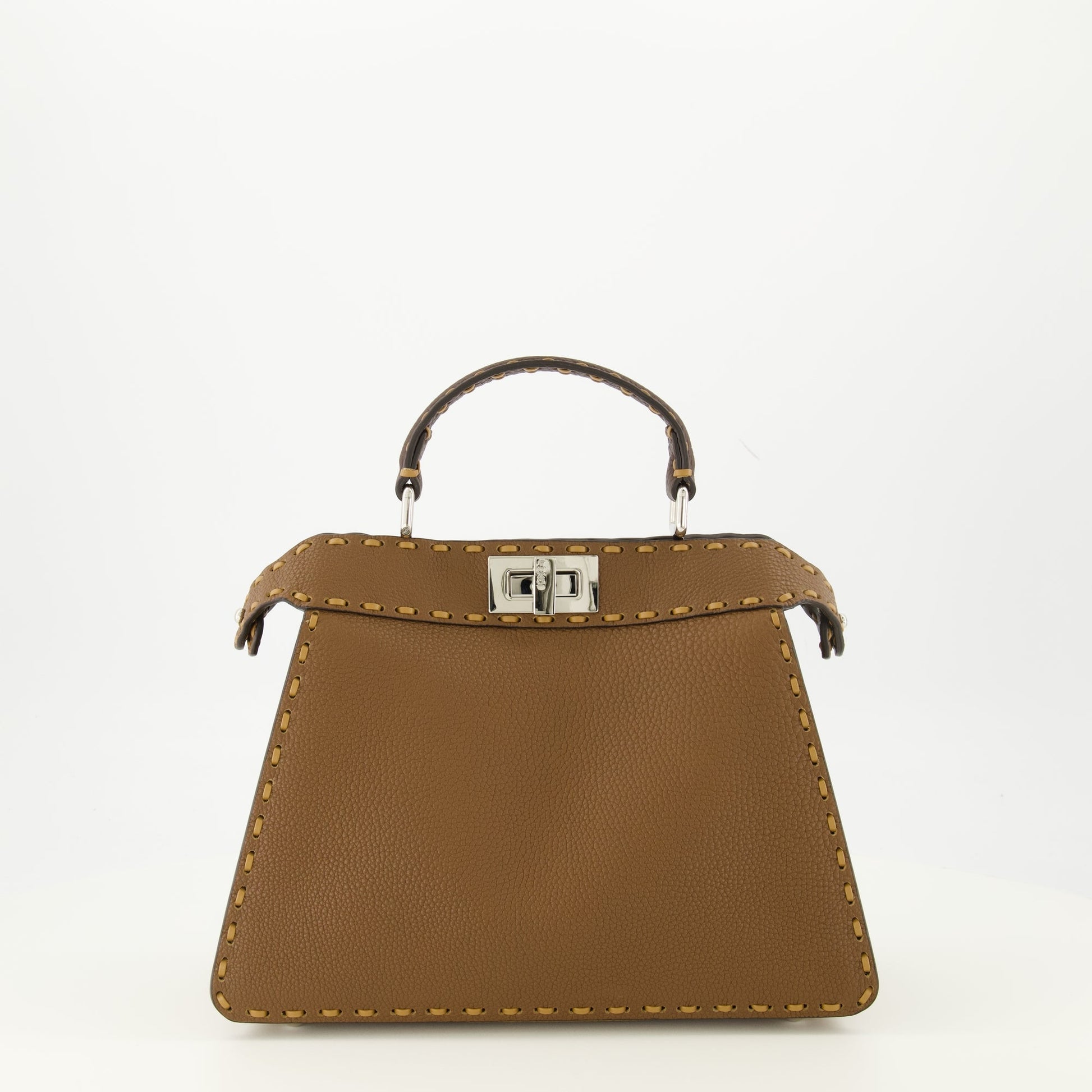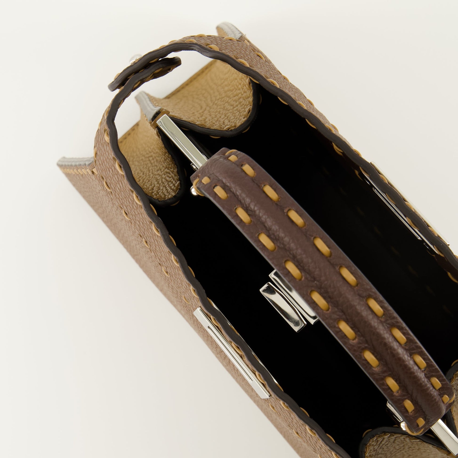 The Peekaboo ISeeU bag from Fendi is an elegant accessory for women, crafted from brown calfskin leather. It is part of the Autumn-Winter 2025 collection, combining sophistication and functionality.