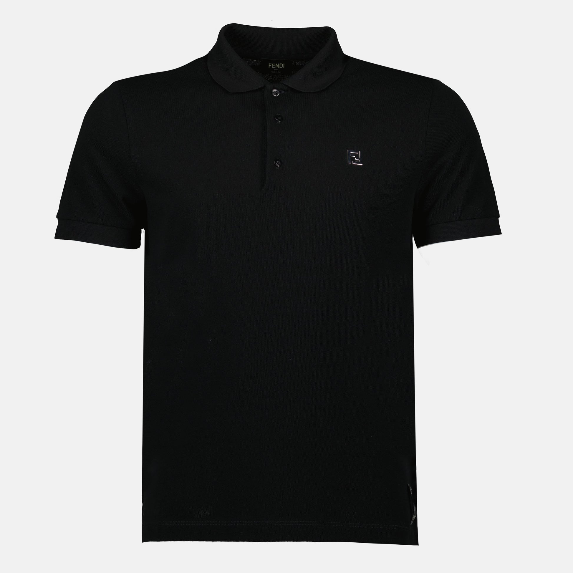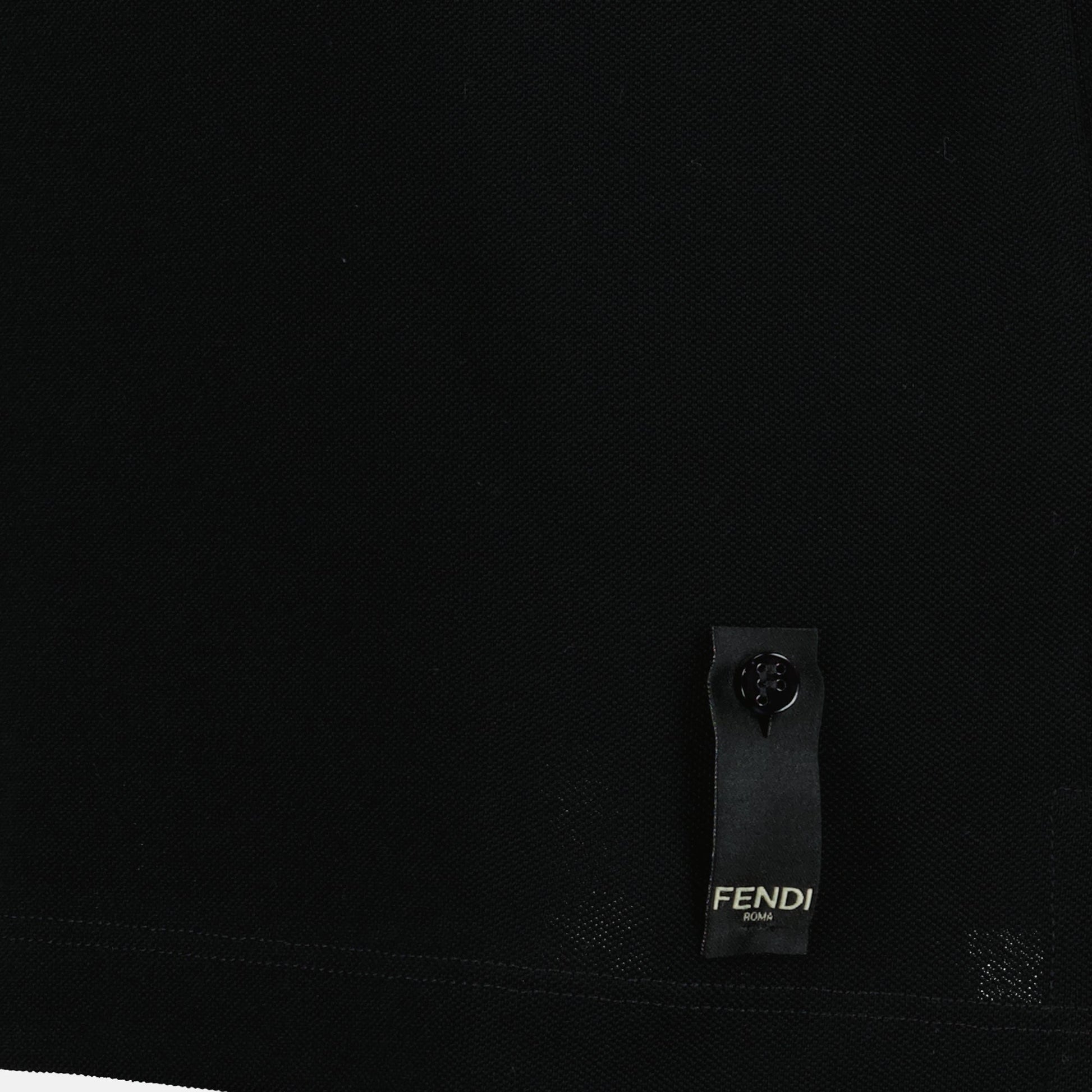 Black piqué cotton polo from Fendi for men. It is part of the Spring-Summer 2025 collection and features a classic collar with a metallic FF logo.