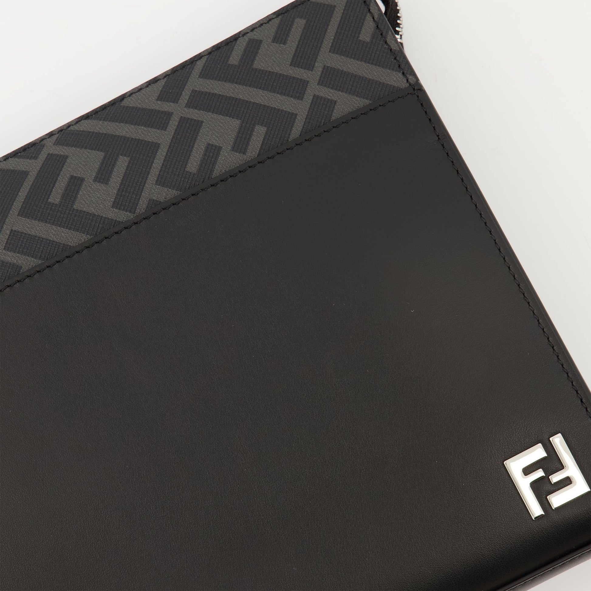 The black Squared FF pouch from Fendi, designed for men, combines elegance and functionality. Made from leather and canvas, it is part of the Autumn-Winter 2025 collection.