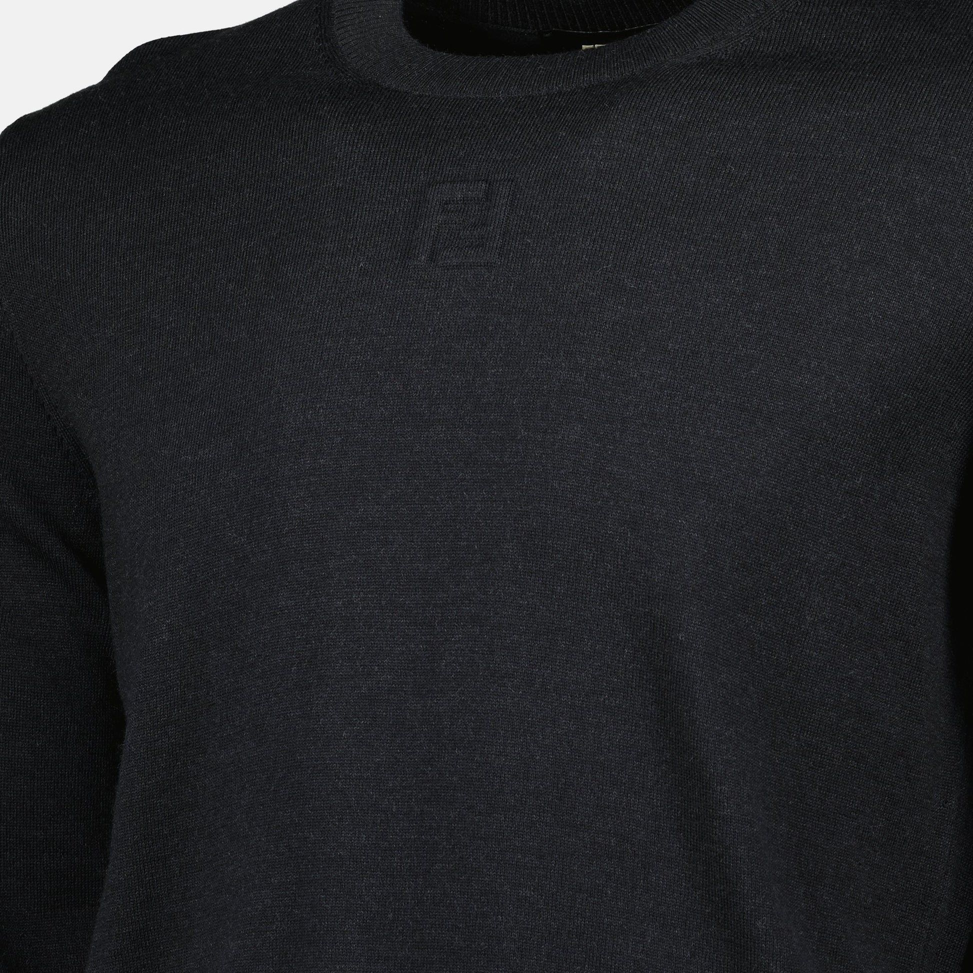 Pull en laine gris foncé de Fendi, conçu pour homme. Ce modèle fait partie de la collection Automne-Hiver 2025, avec un col rond et des manches longues.