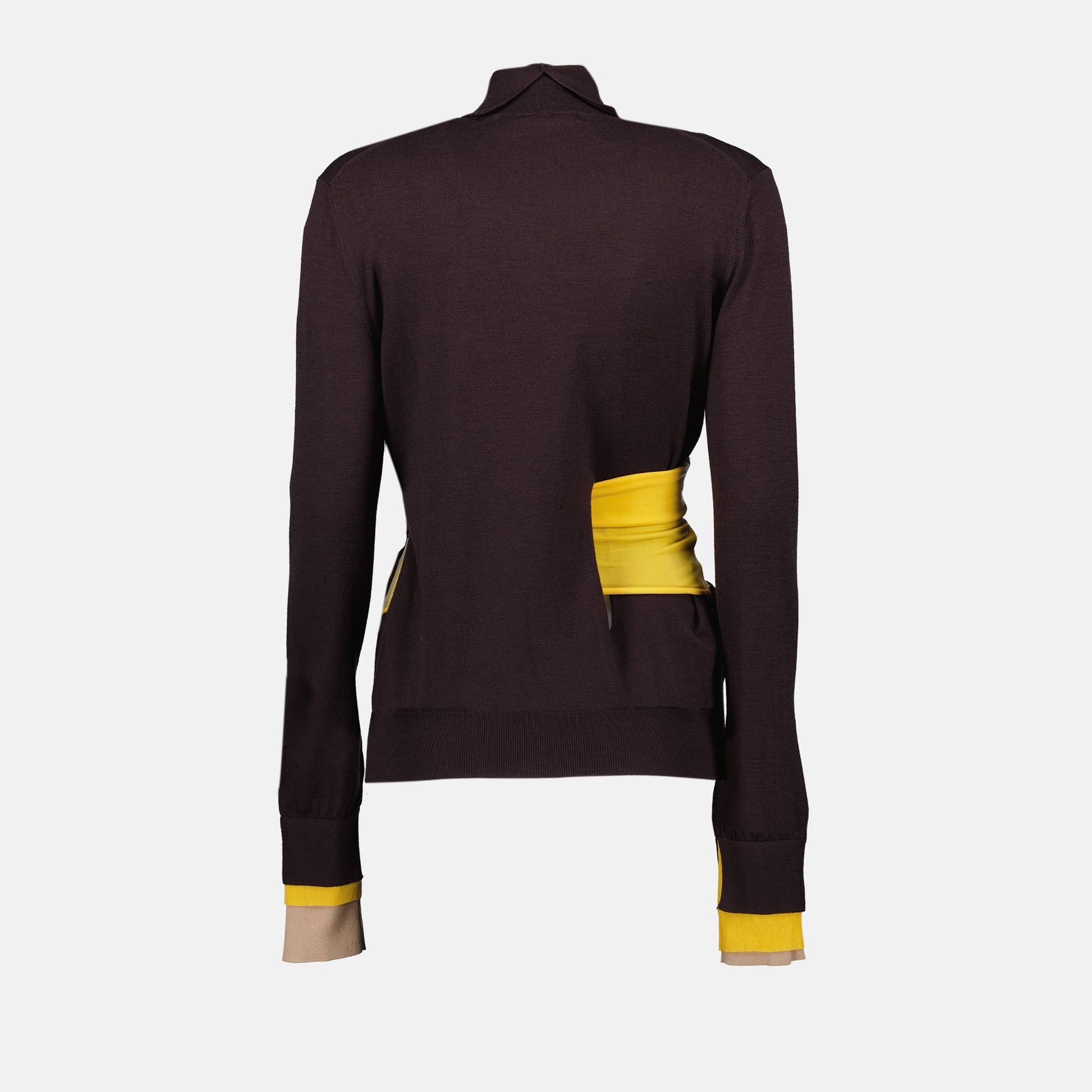Wool dress from the Fendi collection Autumn-Winter 2024 for women. Made of ribbed wool. Item Color: dark purple. Turtleneck and long sleeves.