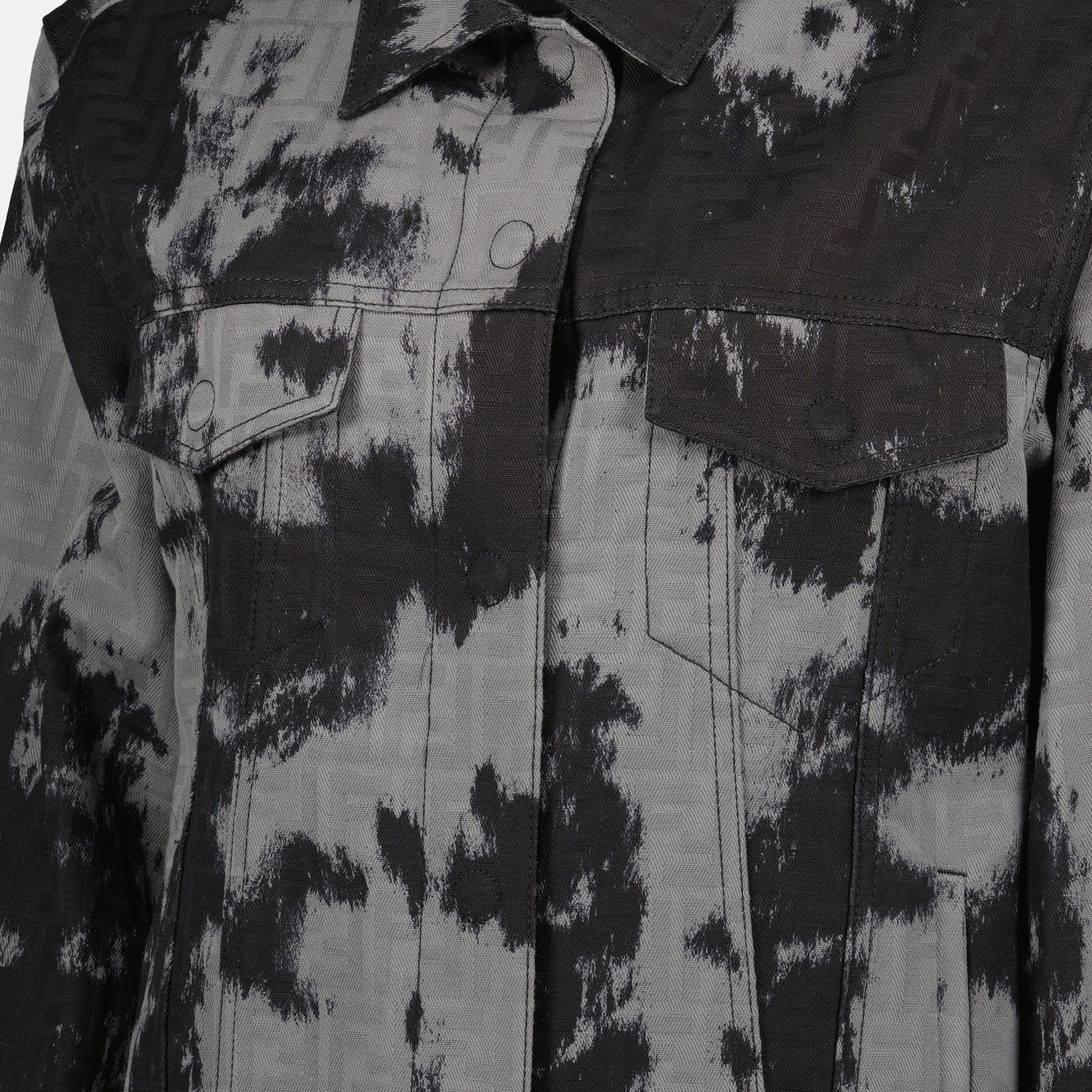 FF denim jacket by Fendi for women. This piece is part of the Fall-Winter 2025 collection and features a Frosted Fauna print.