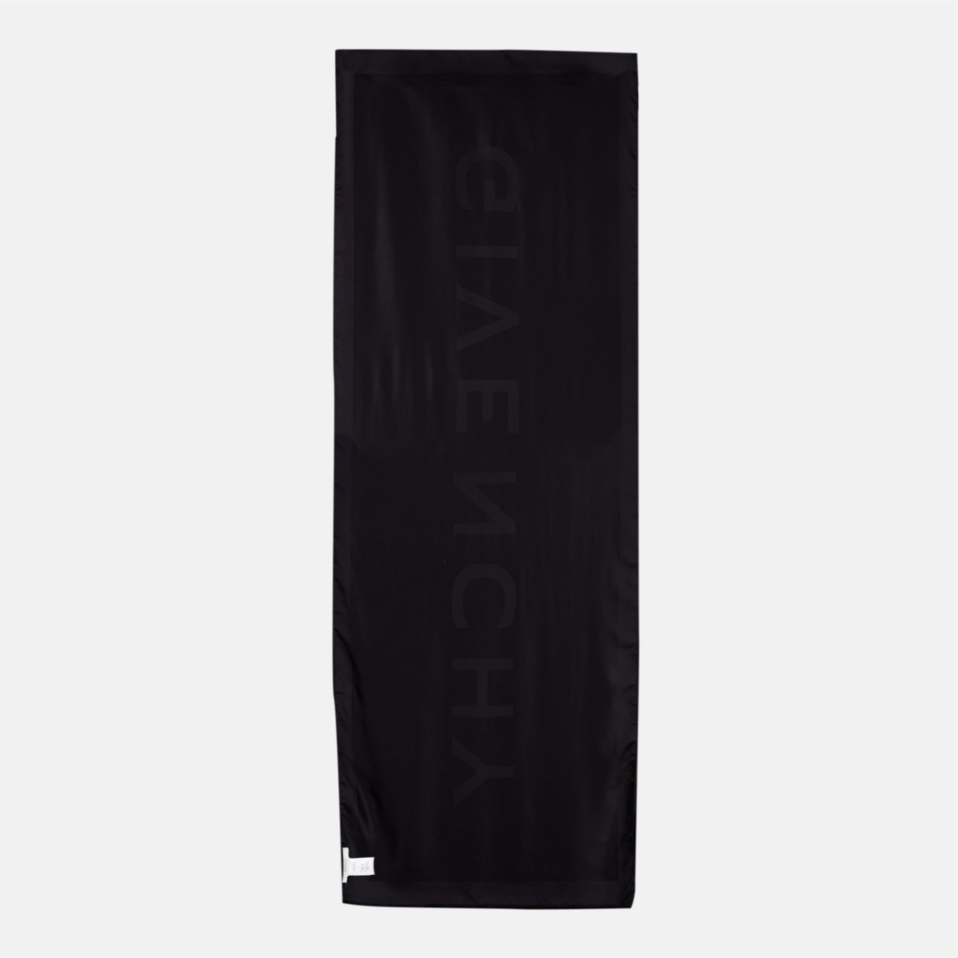 Black silk and wool scarf by Givenchy, designed for women. Part of the Autumn-Winter 2025 collection, it features a printed logo and rolled edges.