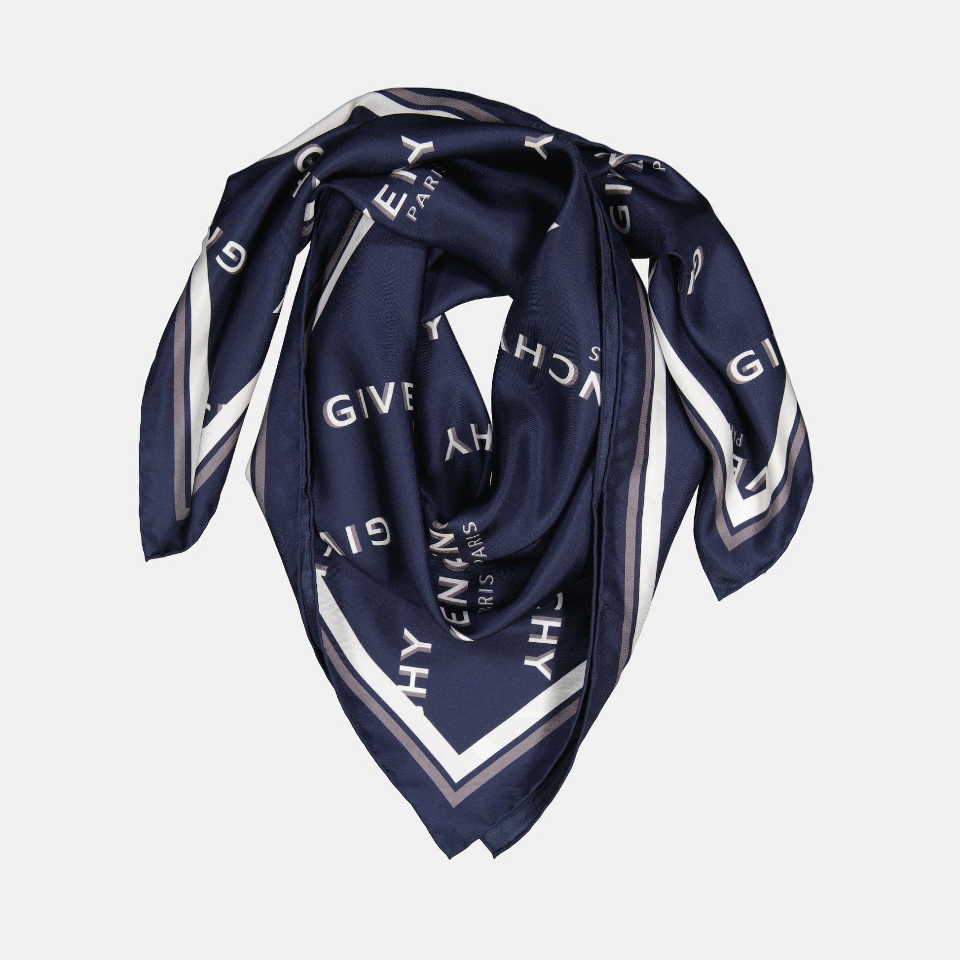 The Givenchy Shadow navy blue square is a silk accessory for women. It is part of the Autumn-Winter 2025 collection and features a printed logo with a shadow effect.