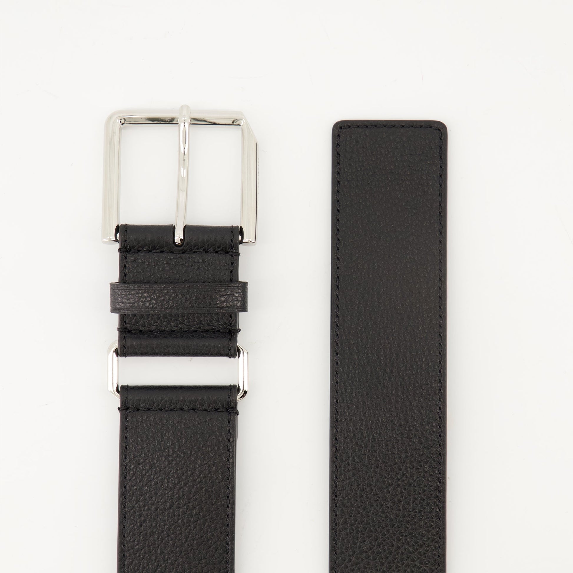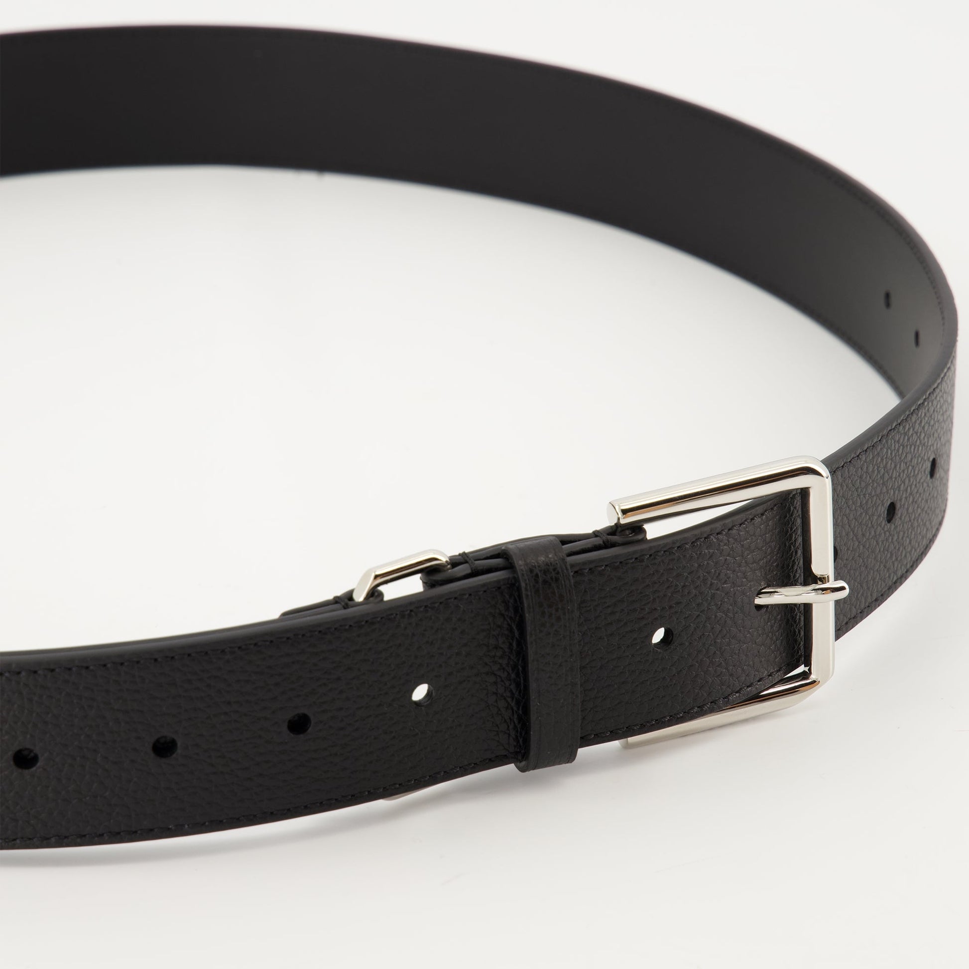 Black leather belt from Givenchy, made of grained calfskin with silver metal details. This model is part of the Autumn-Winter 2025 collection for men.