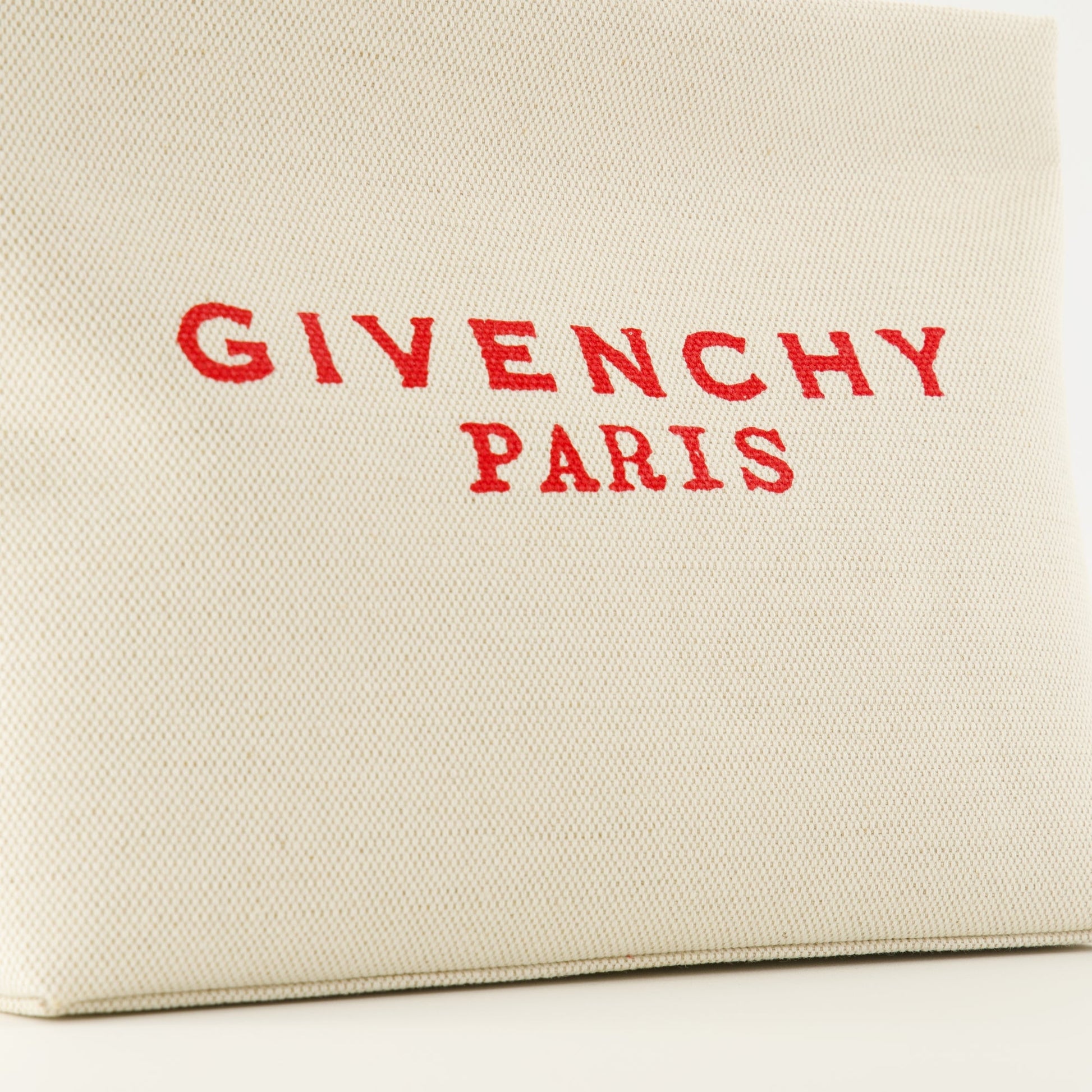 The beige canvas pouch from Givenchy is an elegant accessory for women. Part of the Autumn-Winter 2025 collection, it combines style and practicality with its refined details.