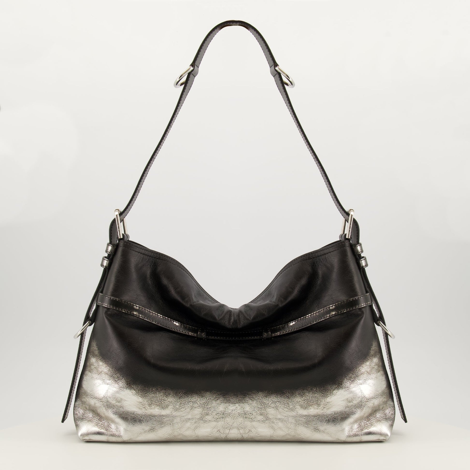 The Voyou Bag in gradient laminated leather from Givenchy is an elegant women's accessory. Part of the Autumn-Winter 2025 collection, it combines modern design with refined details.