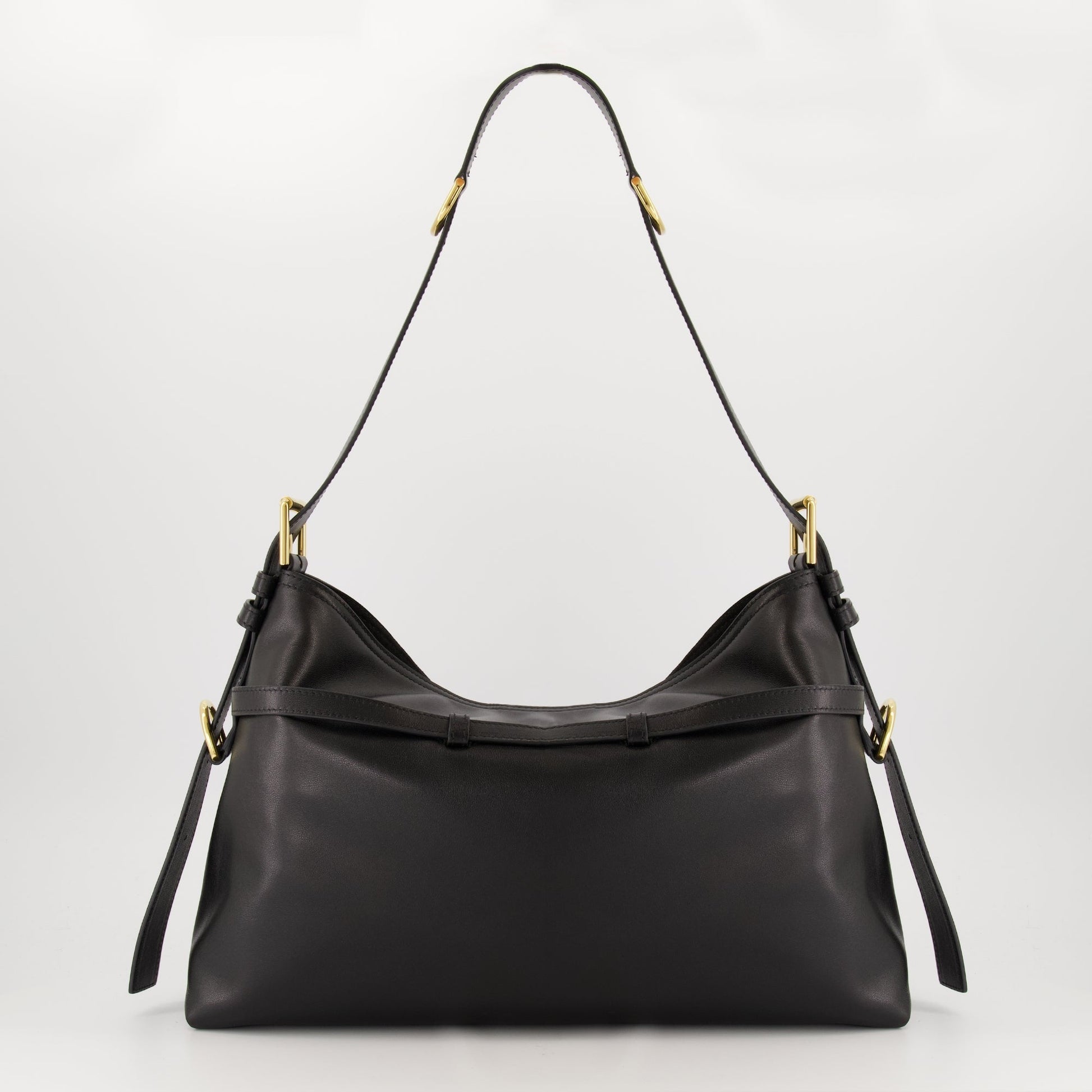The black Voyou medium bag from Givenchy is an elegant accessory for women. It is part of the Autumn-Winter 2025 collection and is made from glossy calfskin leather.