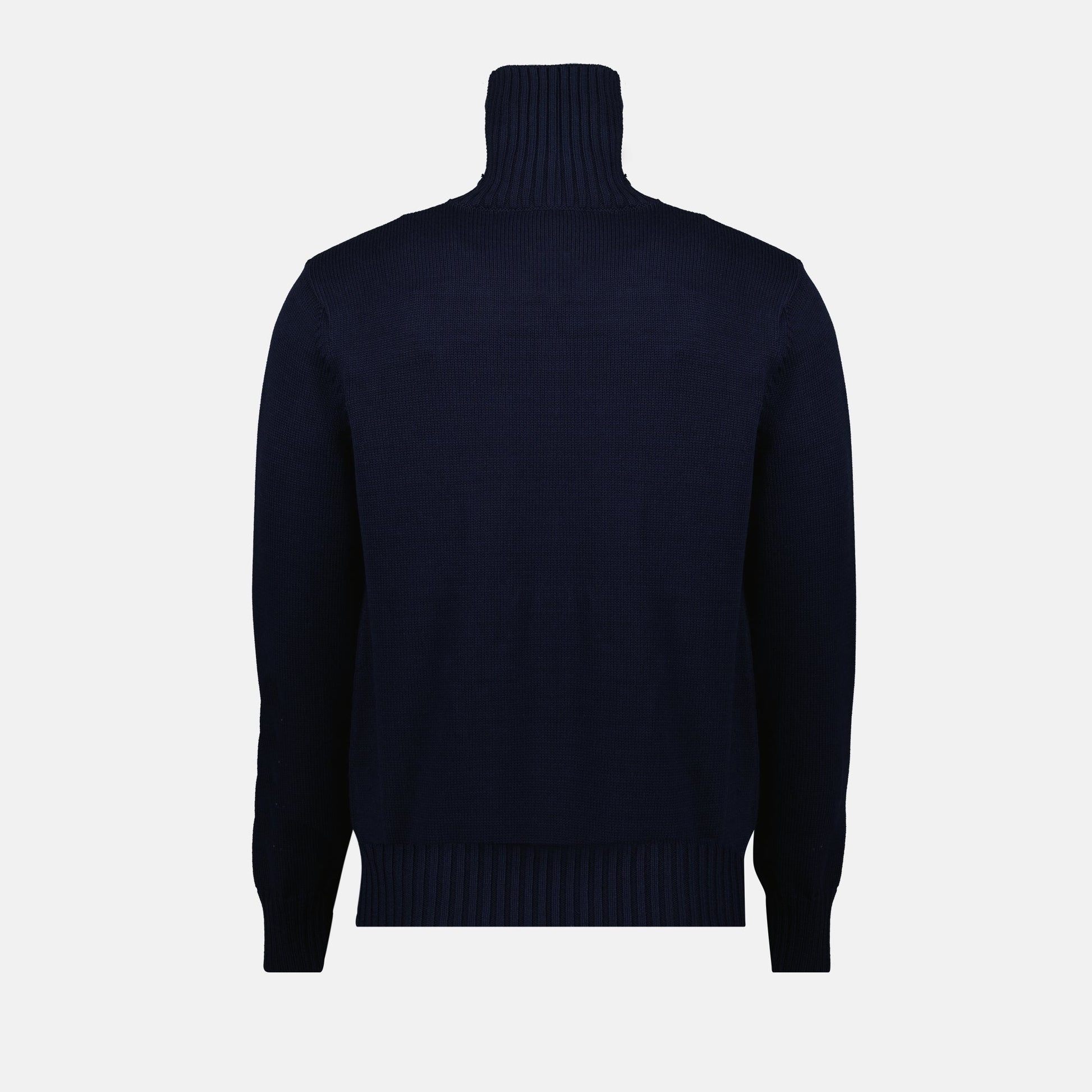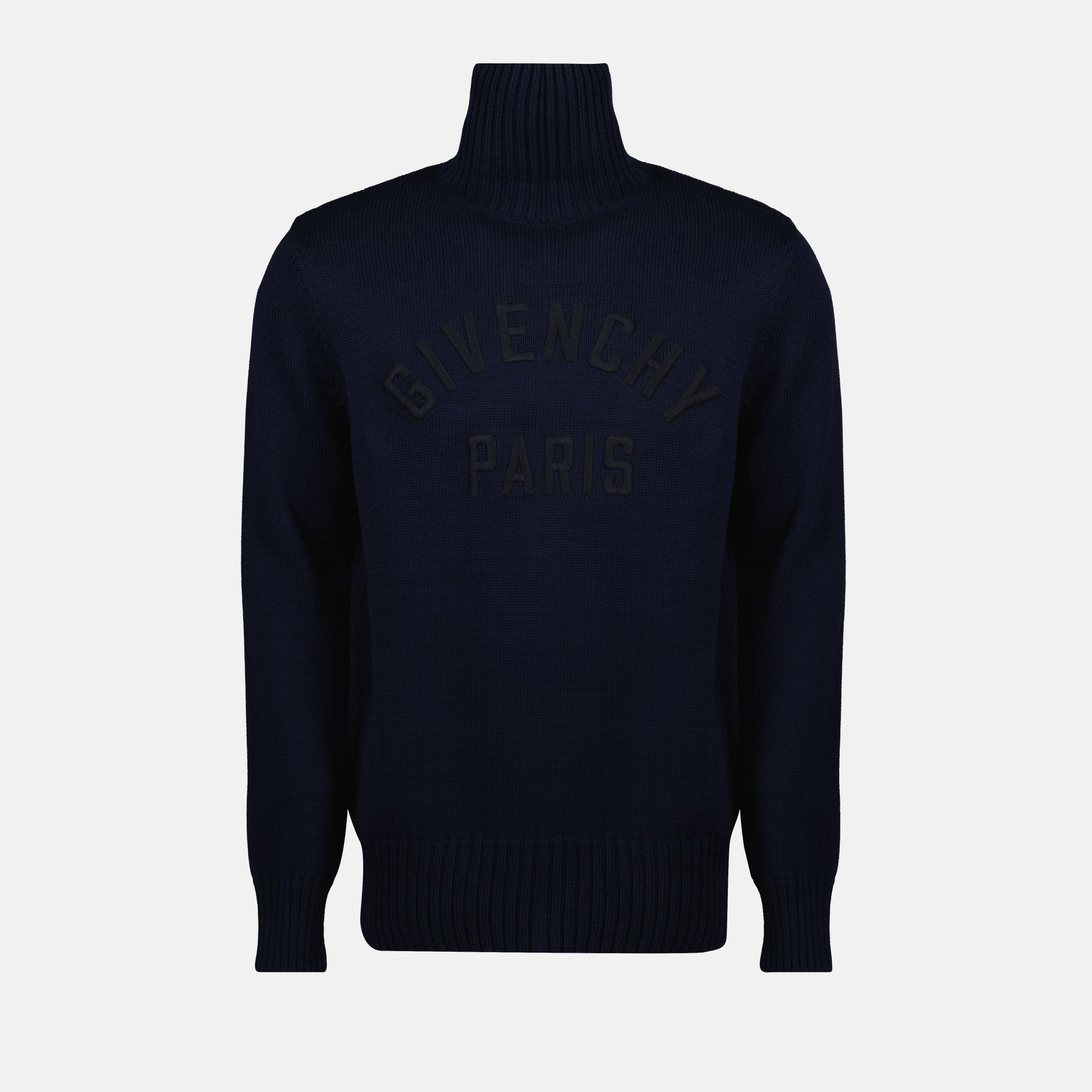 The navy blue turtleneck sweater from Givenchy is designed for men. Part of the Autumn-Winter 2025 collection, it stands out with its embroidered logo and straight cut.