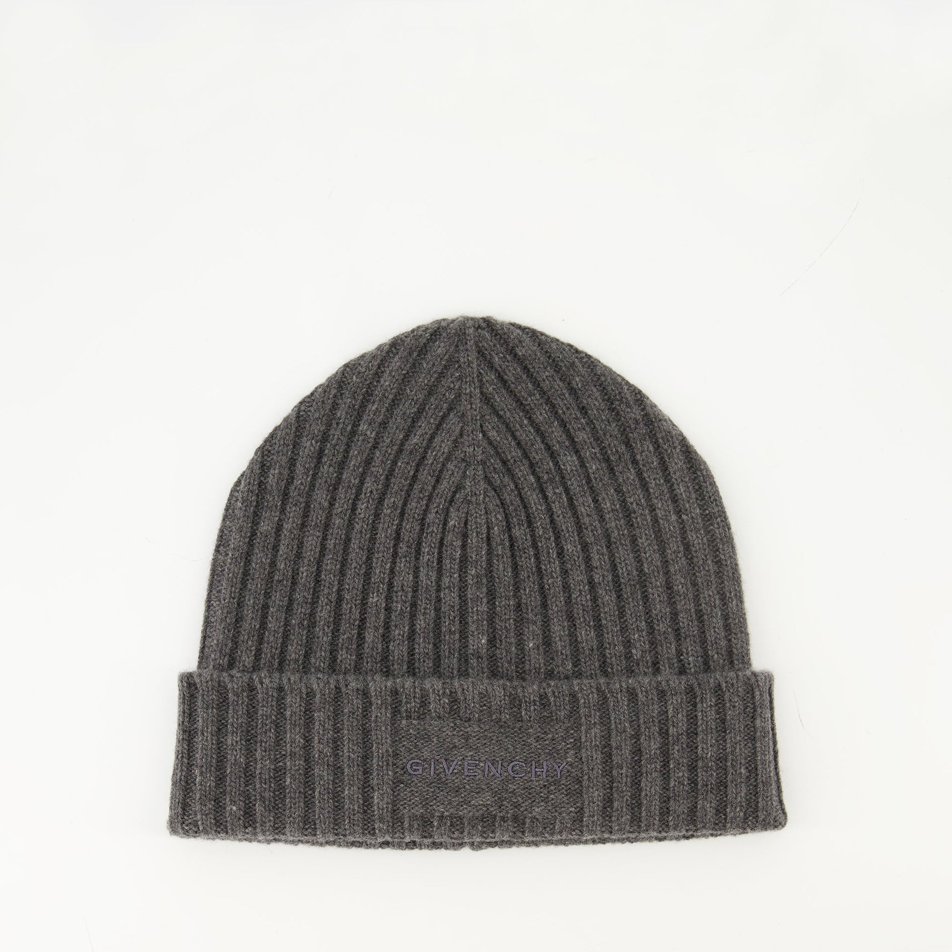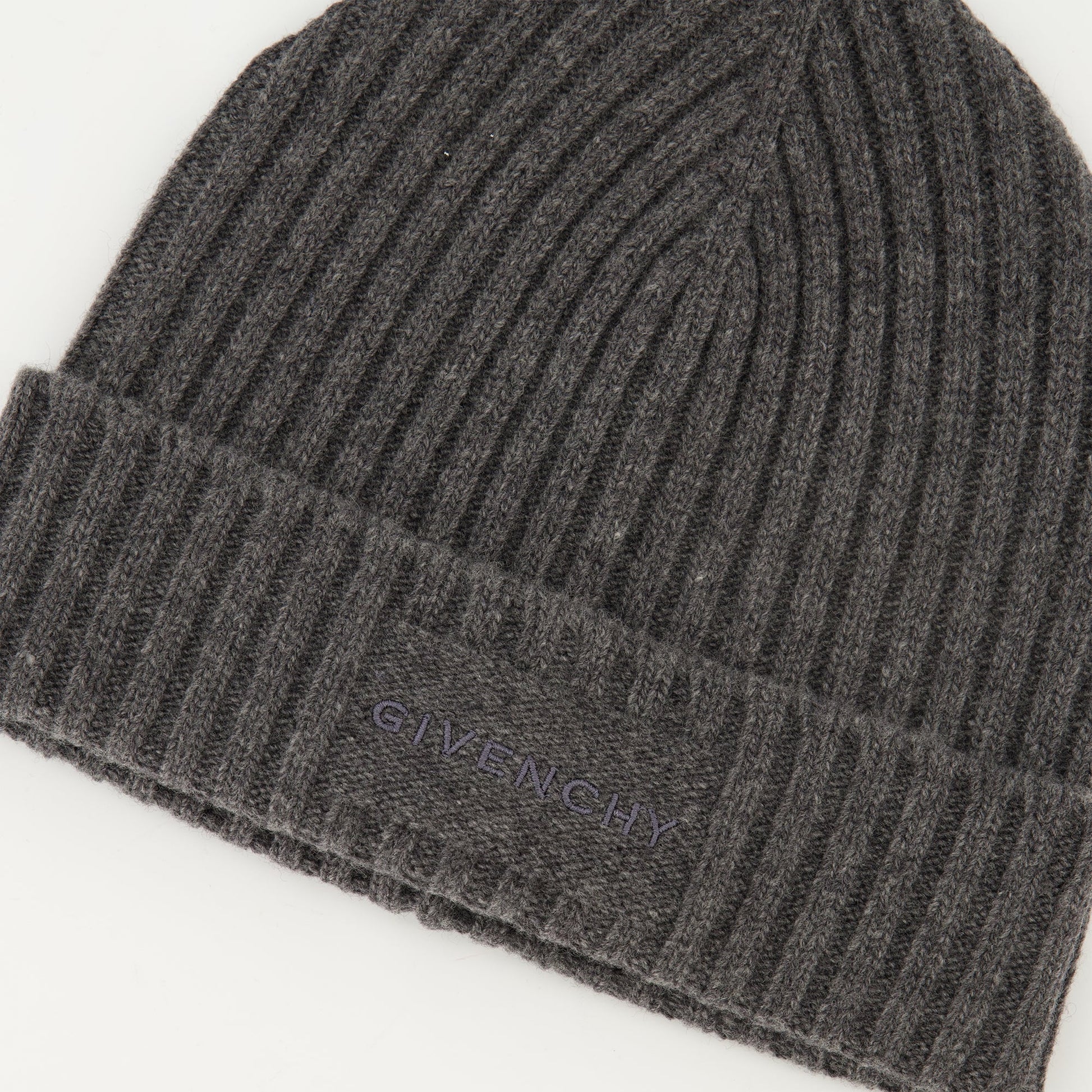 The gray wool beanie from Givenchy is an elegant accessory for women. It is part of the Autumn-Winter 2025 collection, featuring an embroidered logo on the front.