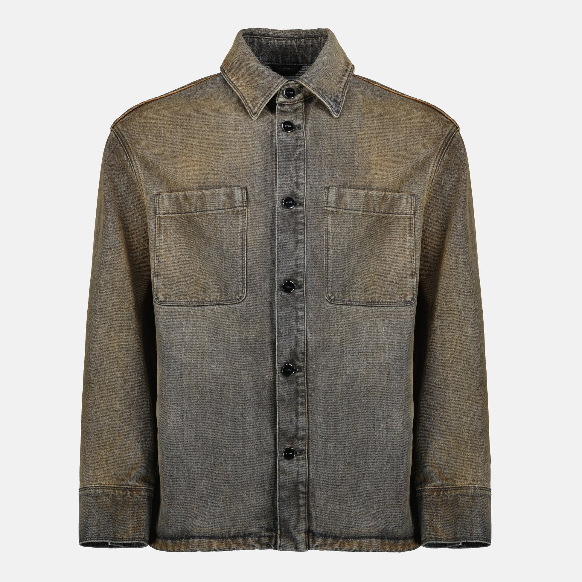 Gray denim shirt by Fendi for men. It is part of the Autumn-Winter 2025 collection.