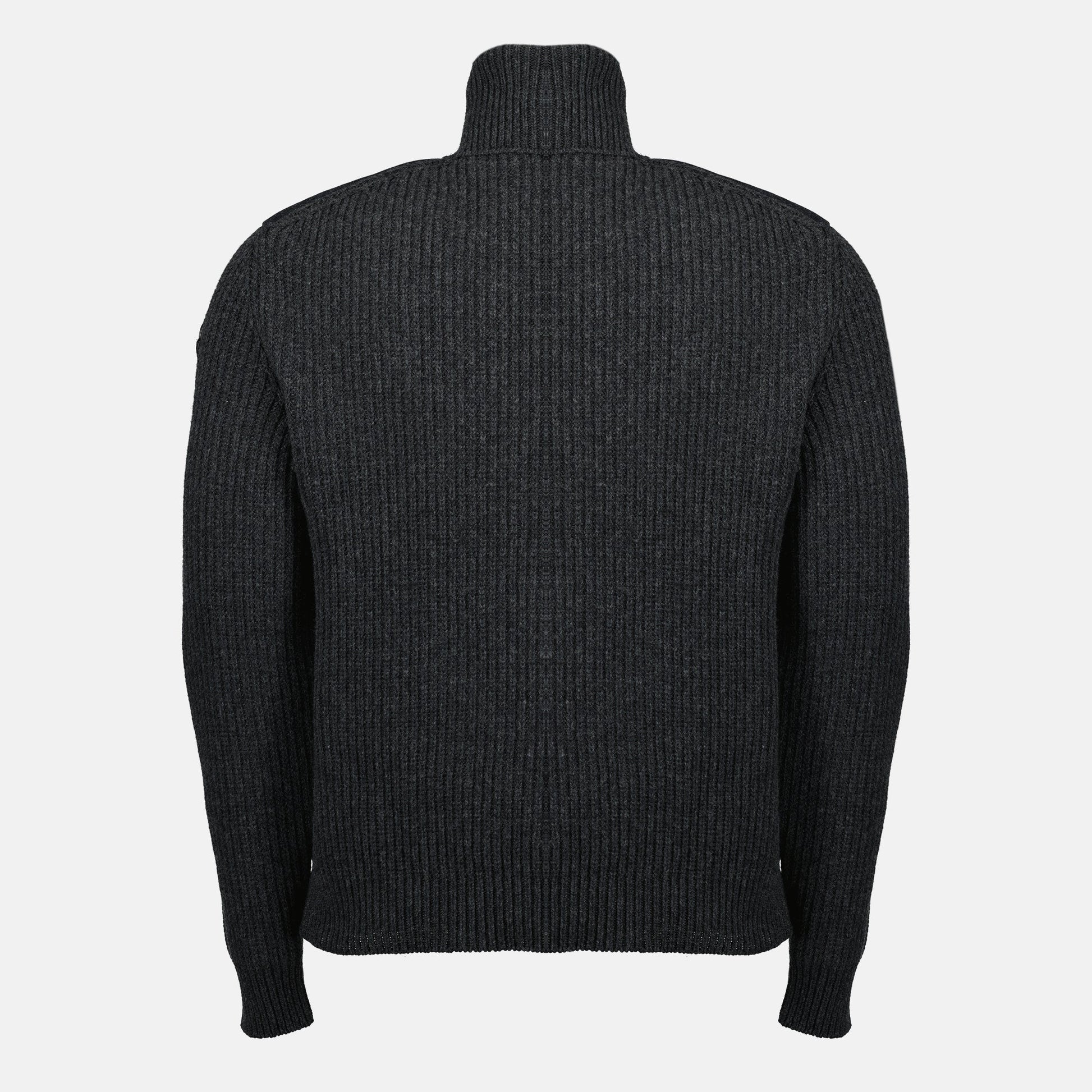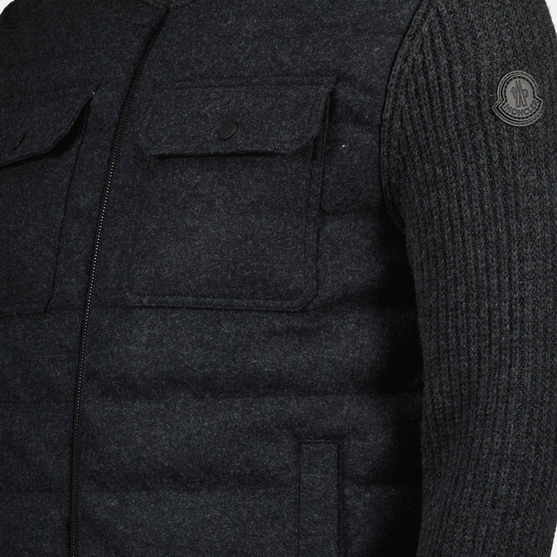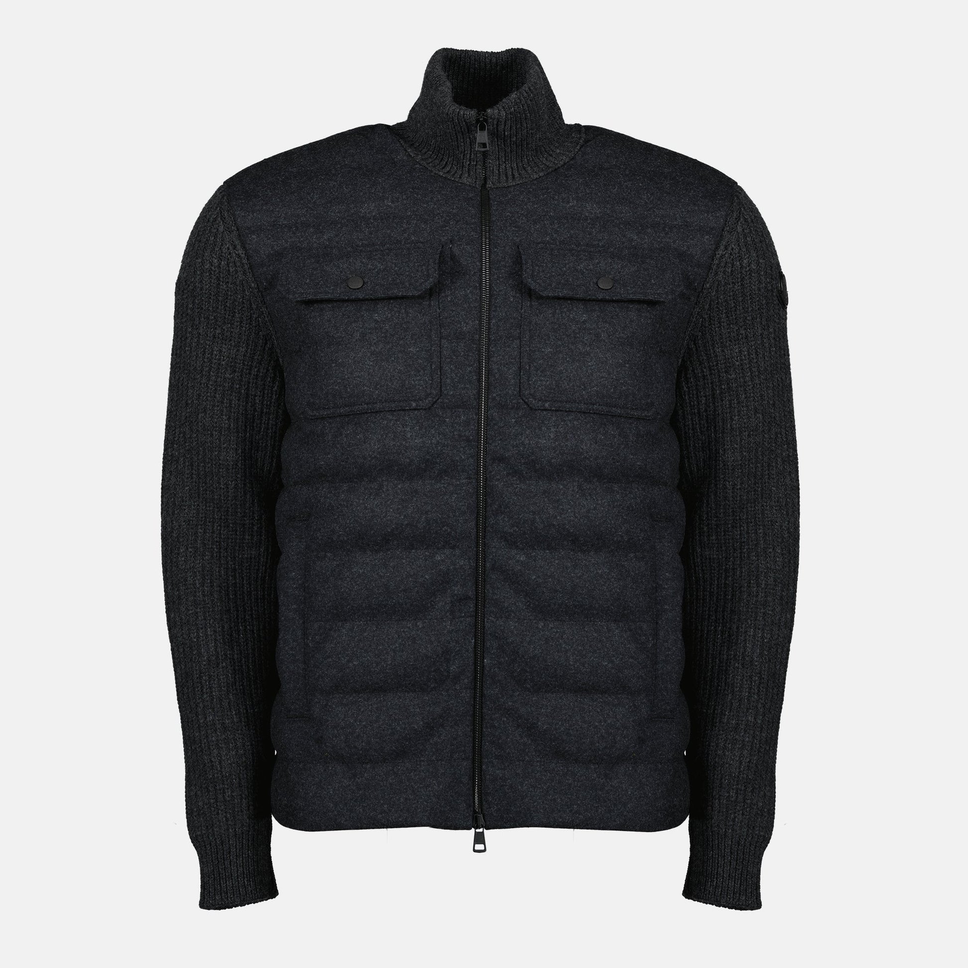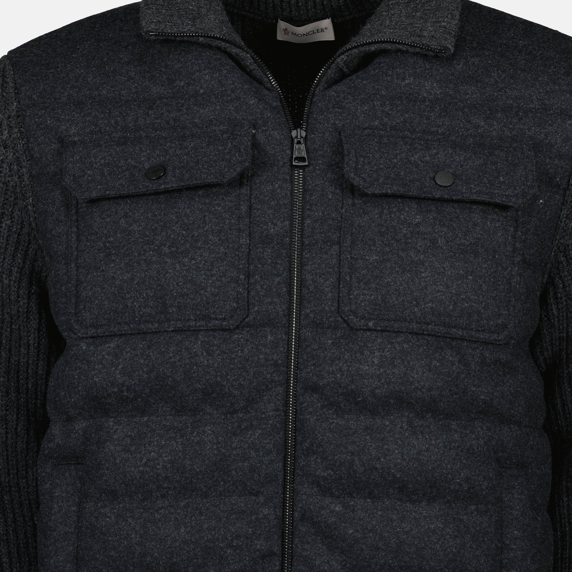 The gray quilted wool zip cardigan from Moncler is designed for men. It is part of the Fall-Winter 2025 collection.