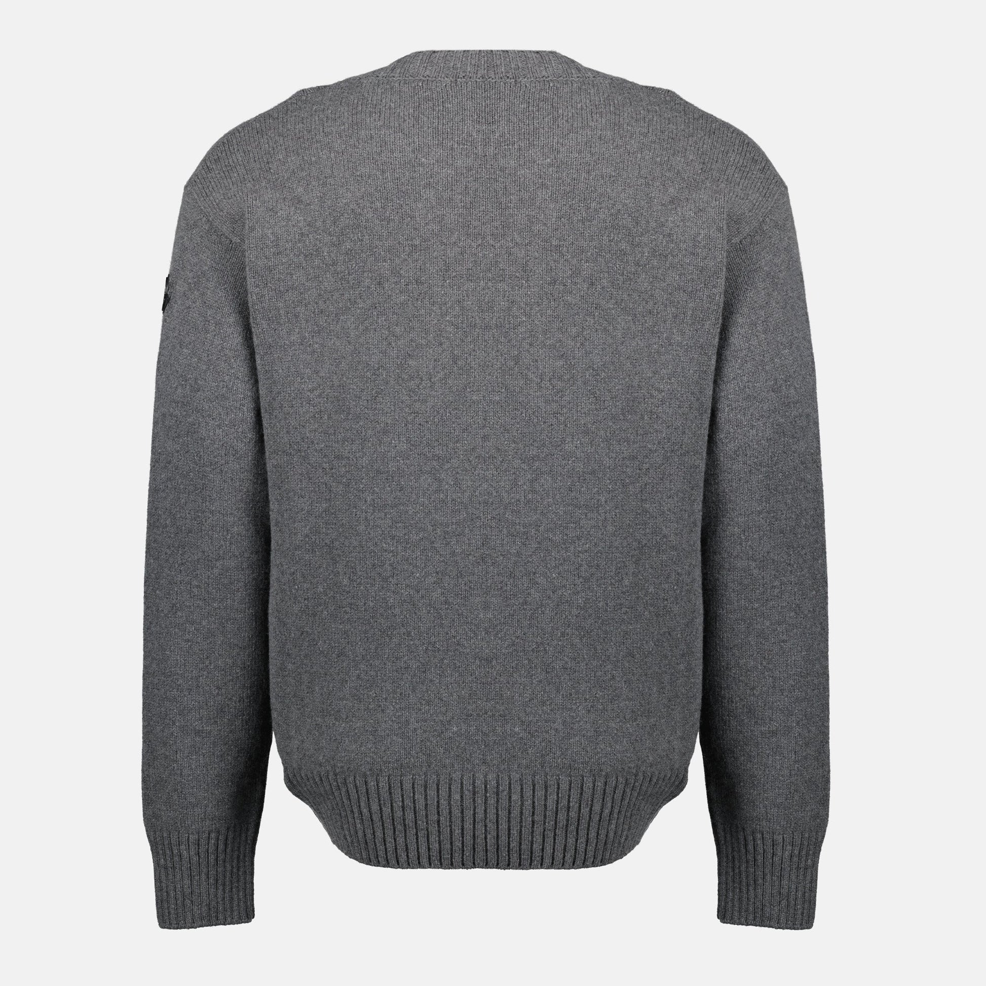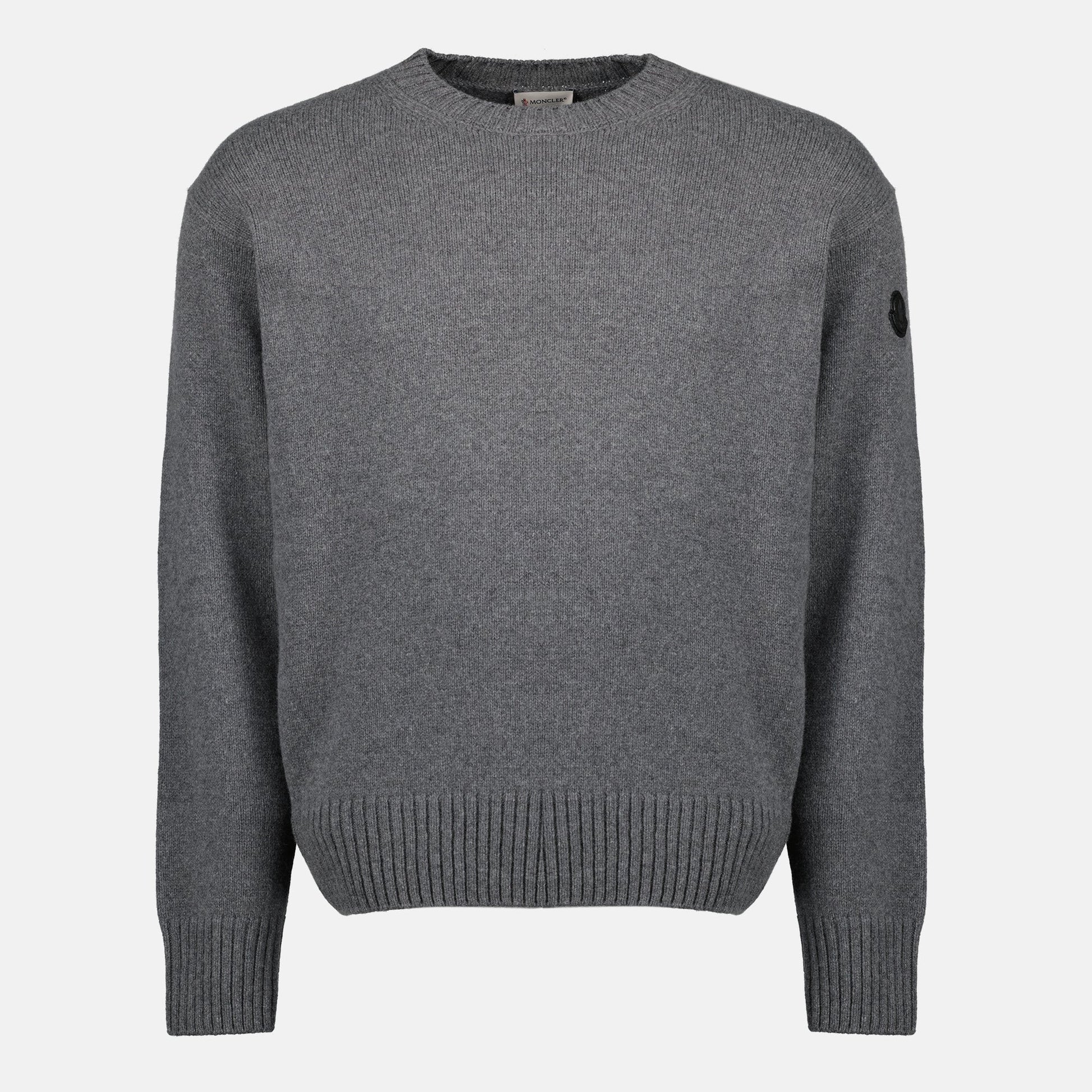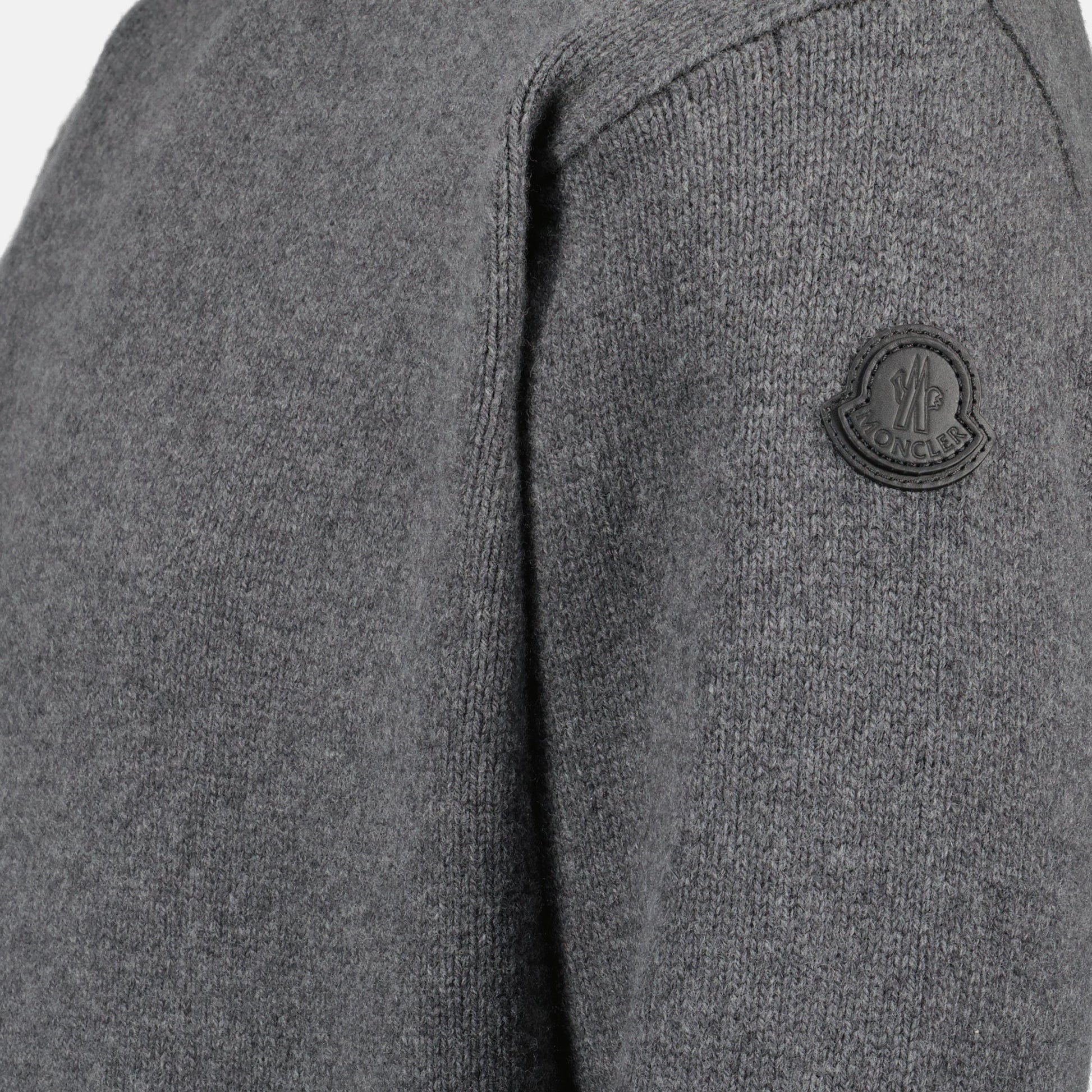 Gray wool and cashmere sweater by Moncler for men. This model is part of the Autumn-Winter 2025 collection.