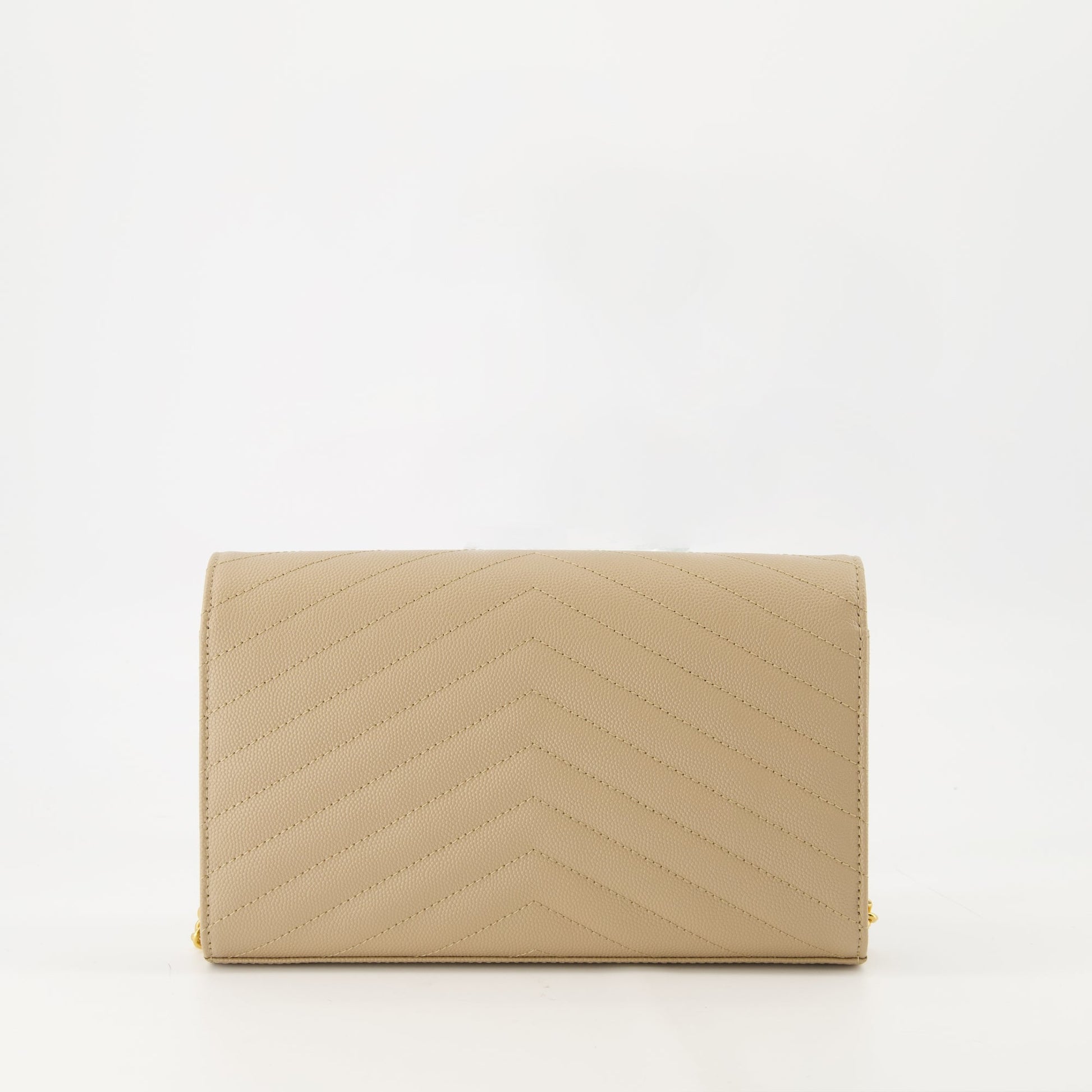 The beige Cassandre chain wallet from Saint Laurent is an elegant women's accessory. Part of the Autumn-Winter 2025 collection, it combines style and practicality.