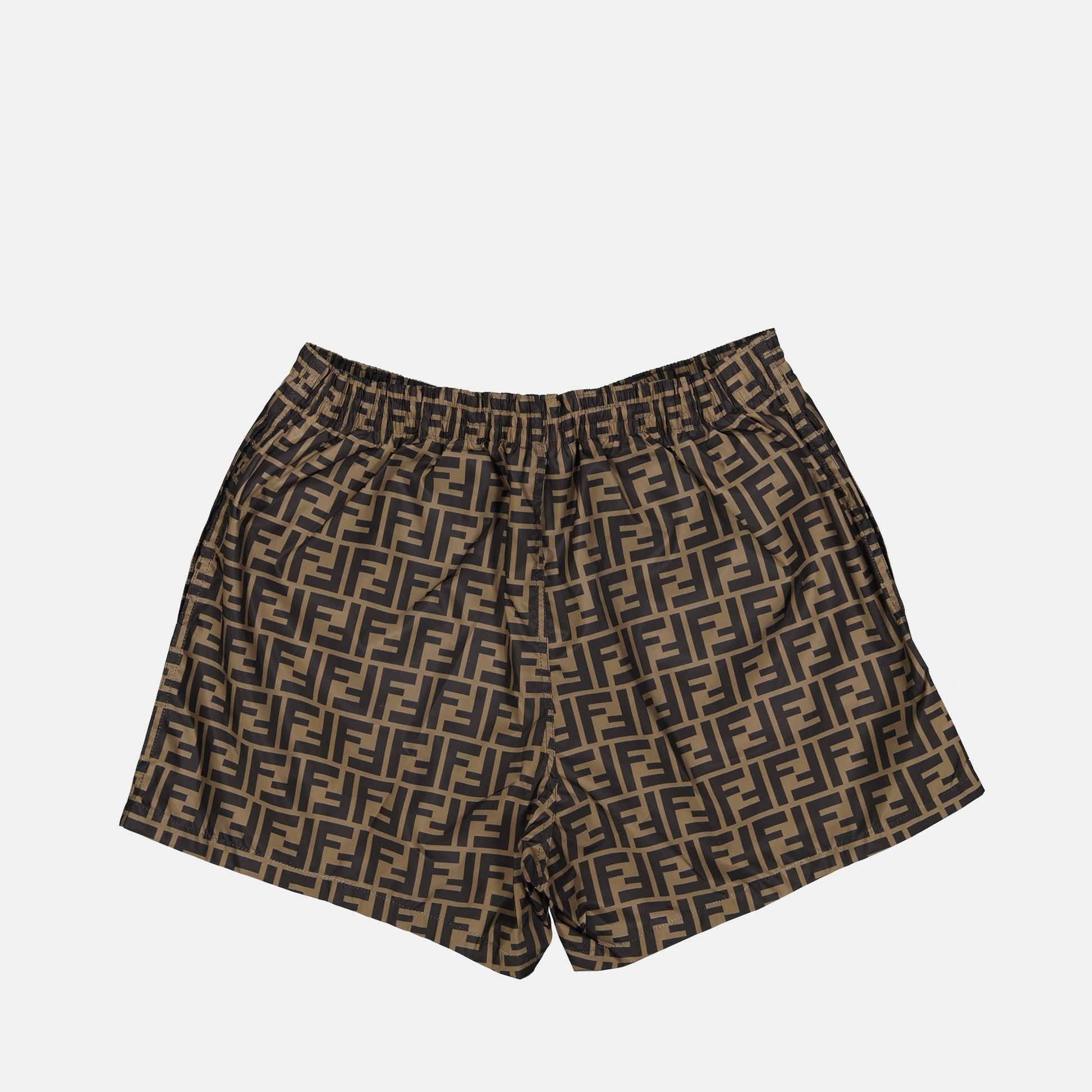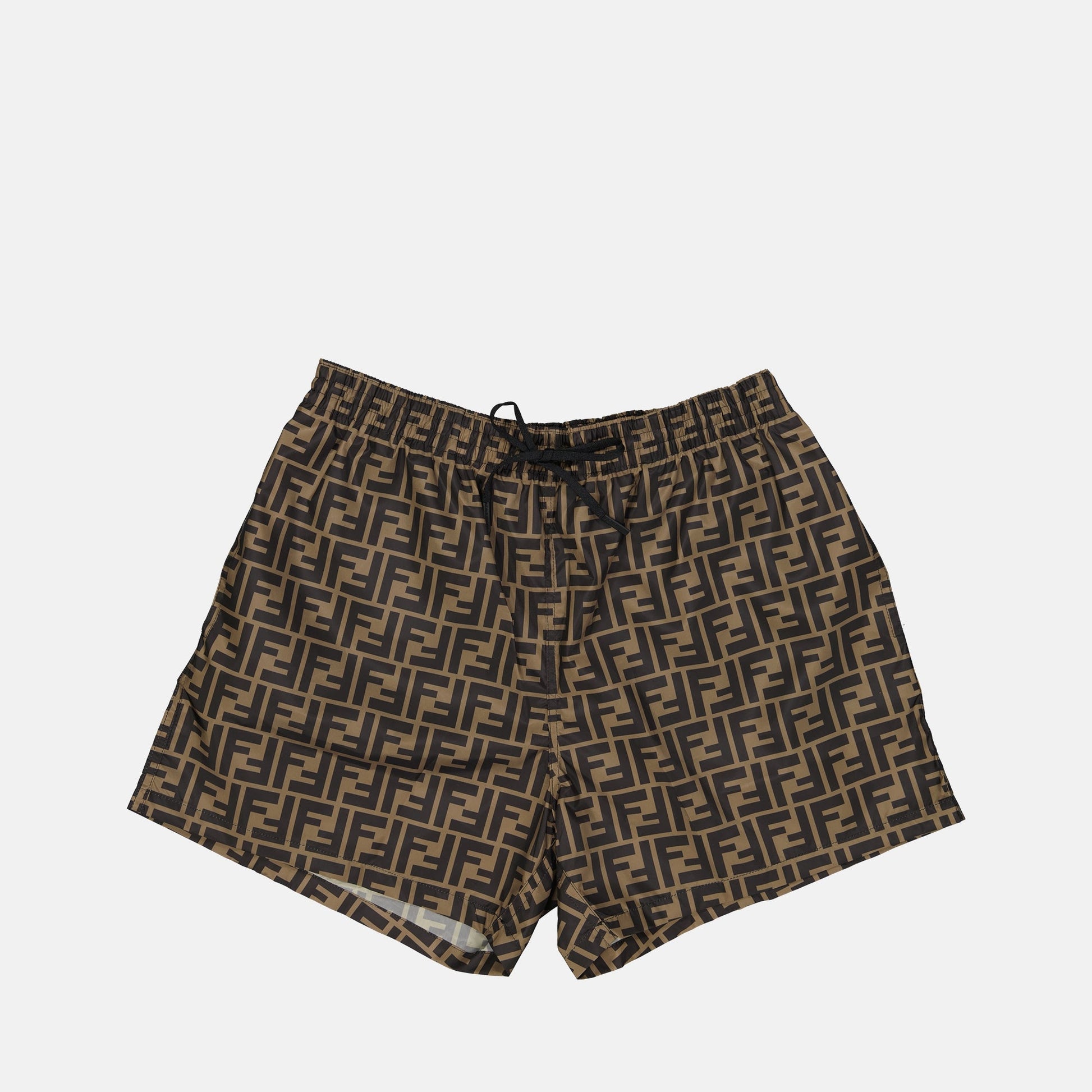 FF swimwear by Fendi for men, made from nylon. It is part of the Spring-Summer 2026 collection and features an all-over FF print.