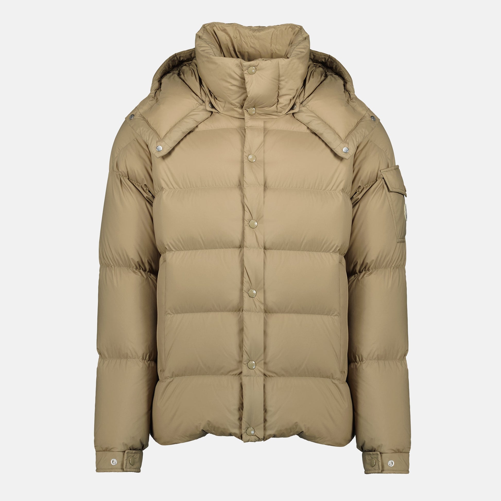 The Maya 70 beige down jacket from Moncler is designed for men. It is part of the Autumn-Winter 2025 collection and offers practical features.