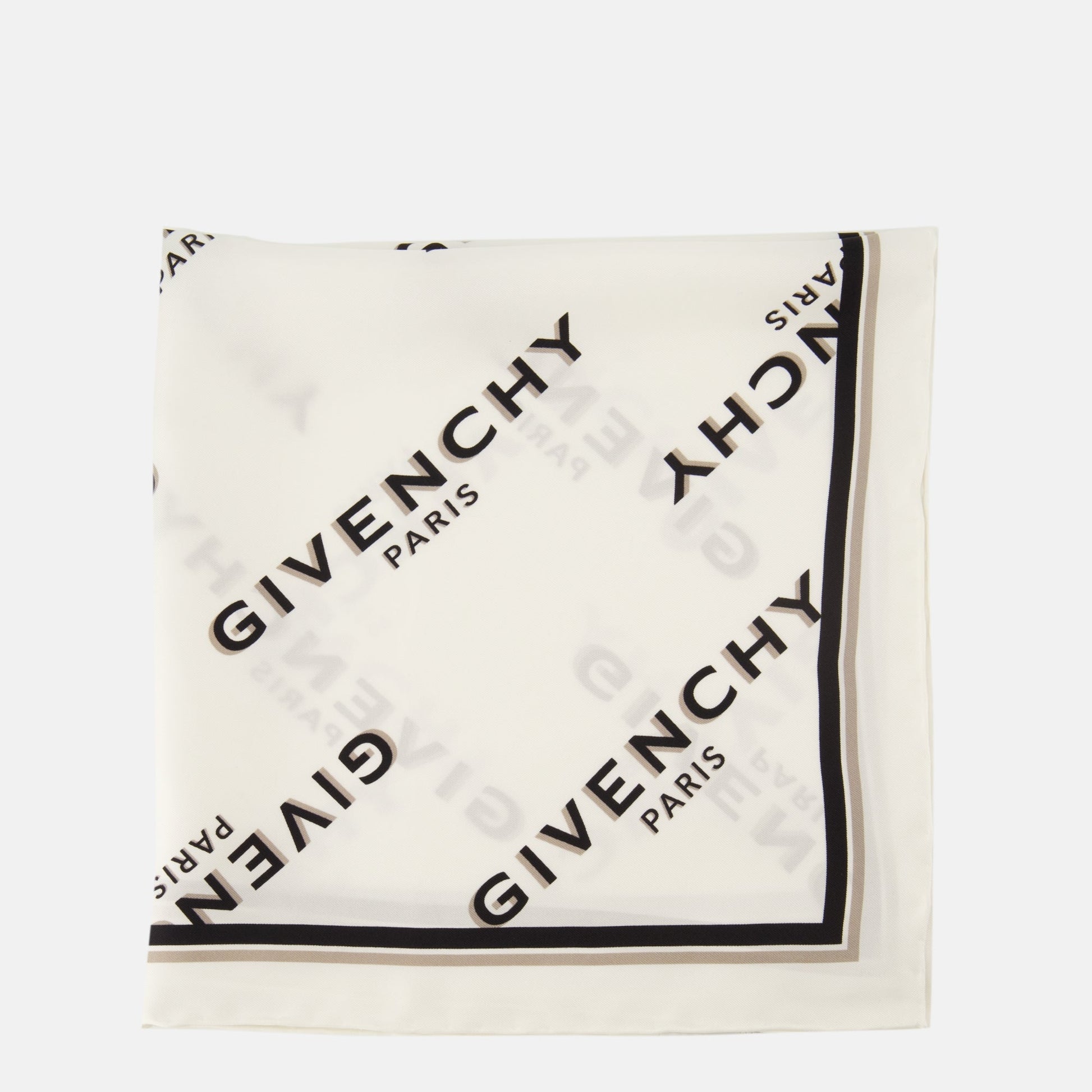 The mini silk square Shadow white from Givenchy is a women's accessory. It is part of the Autumn-Winter 2025 collection and is made from organic silk twill.
