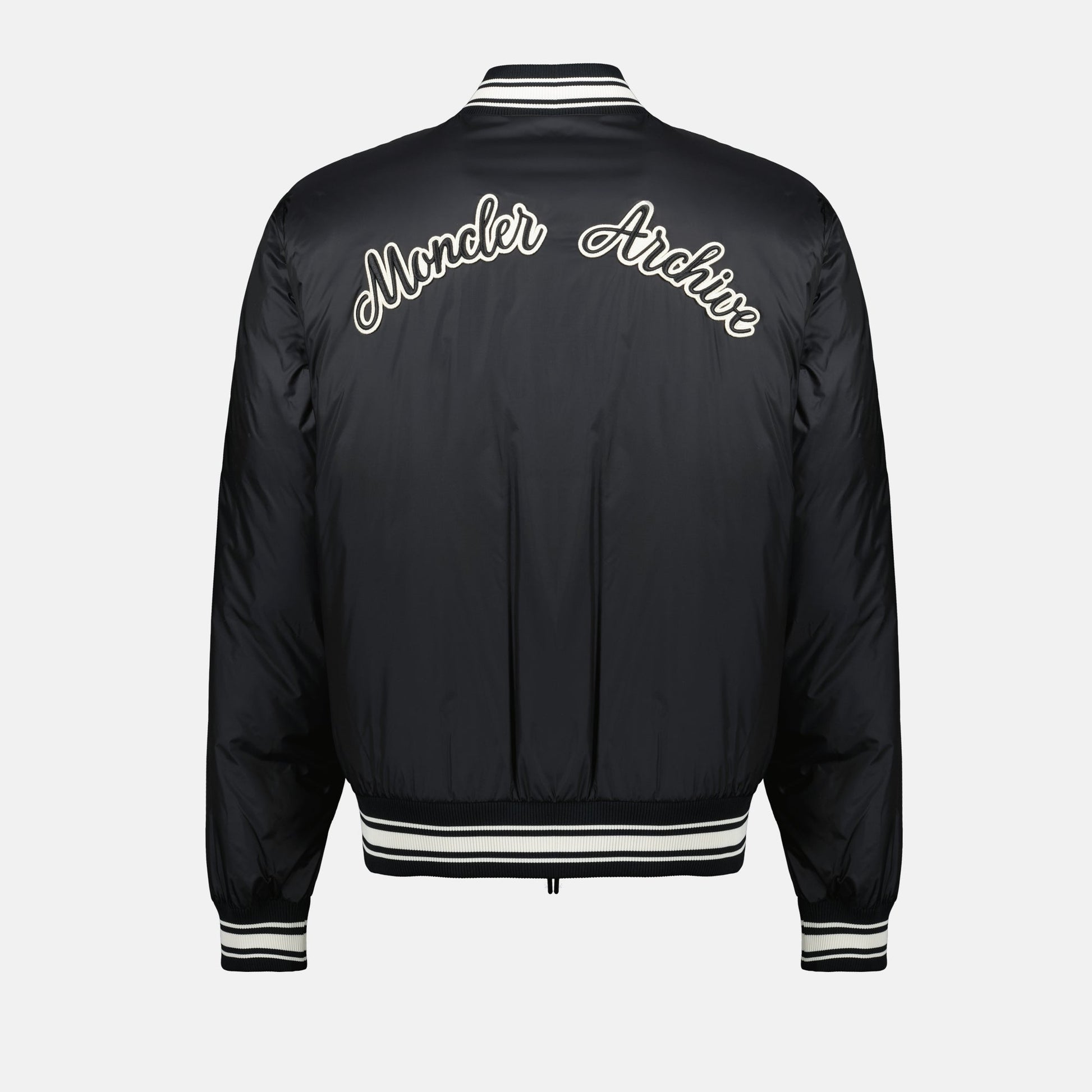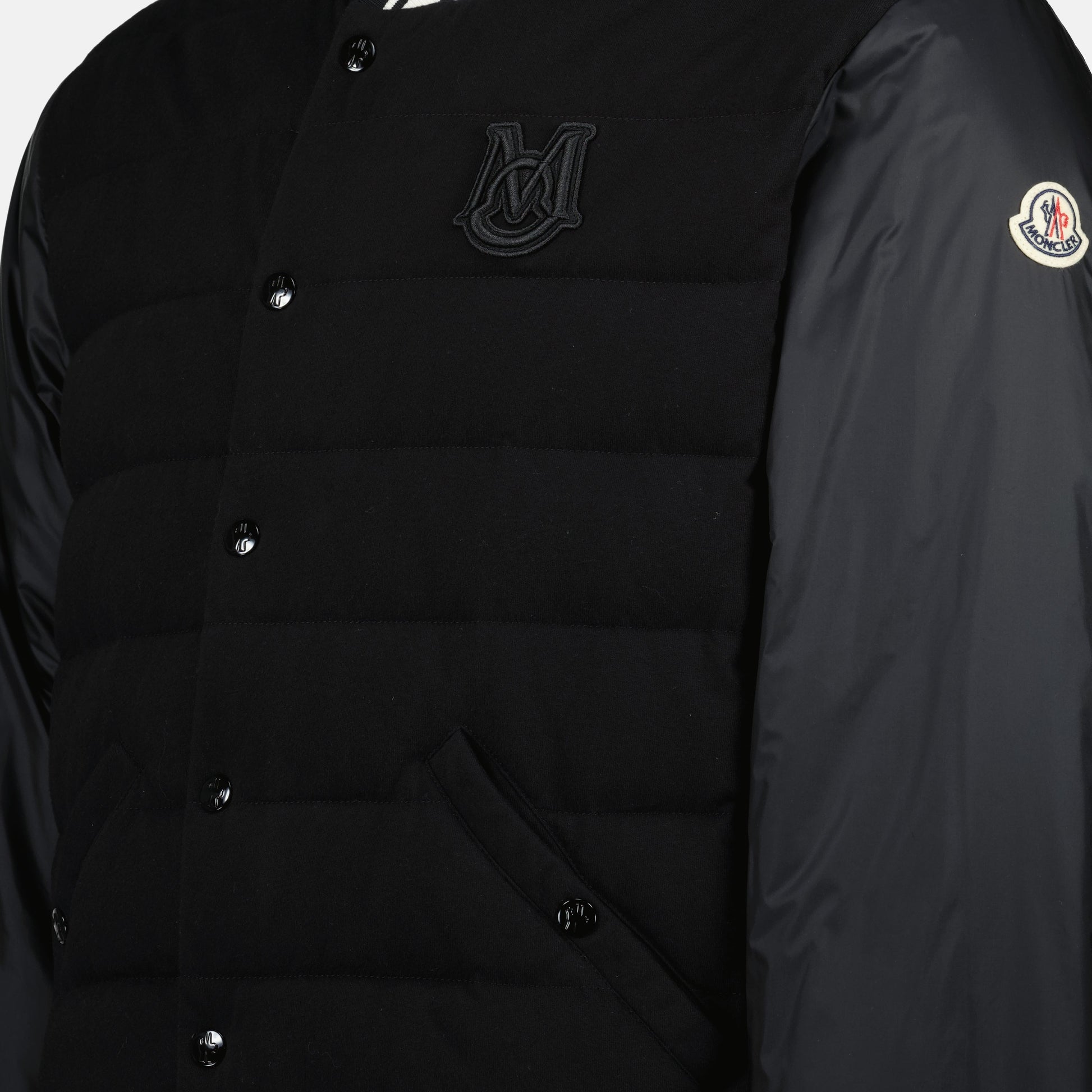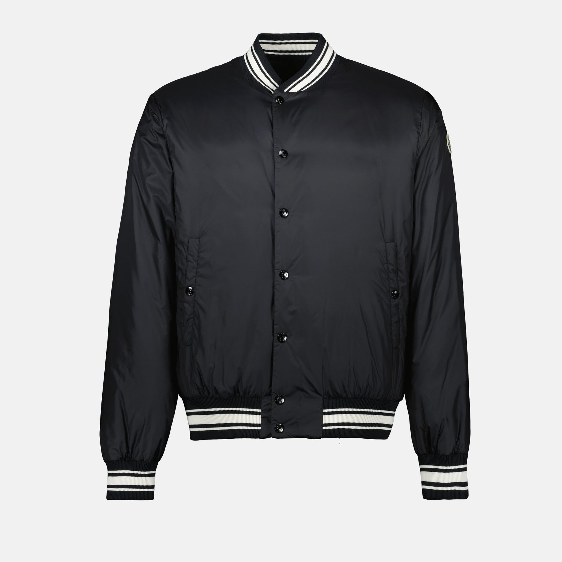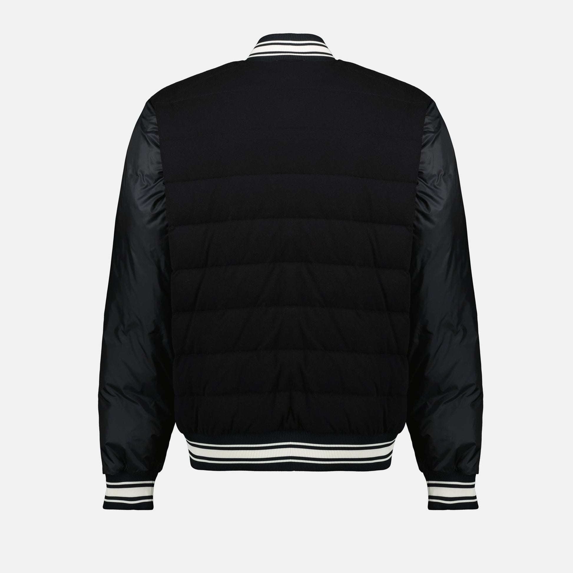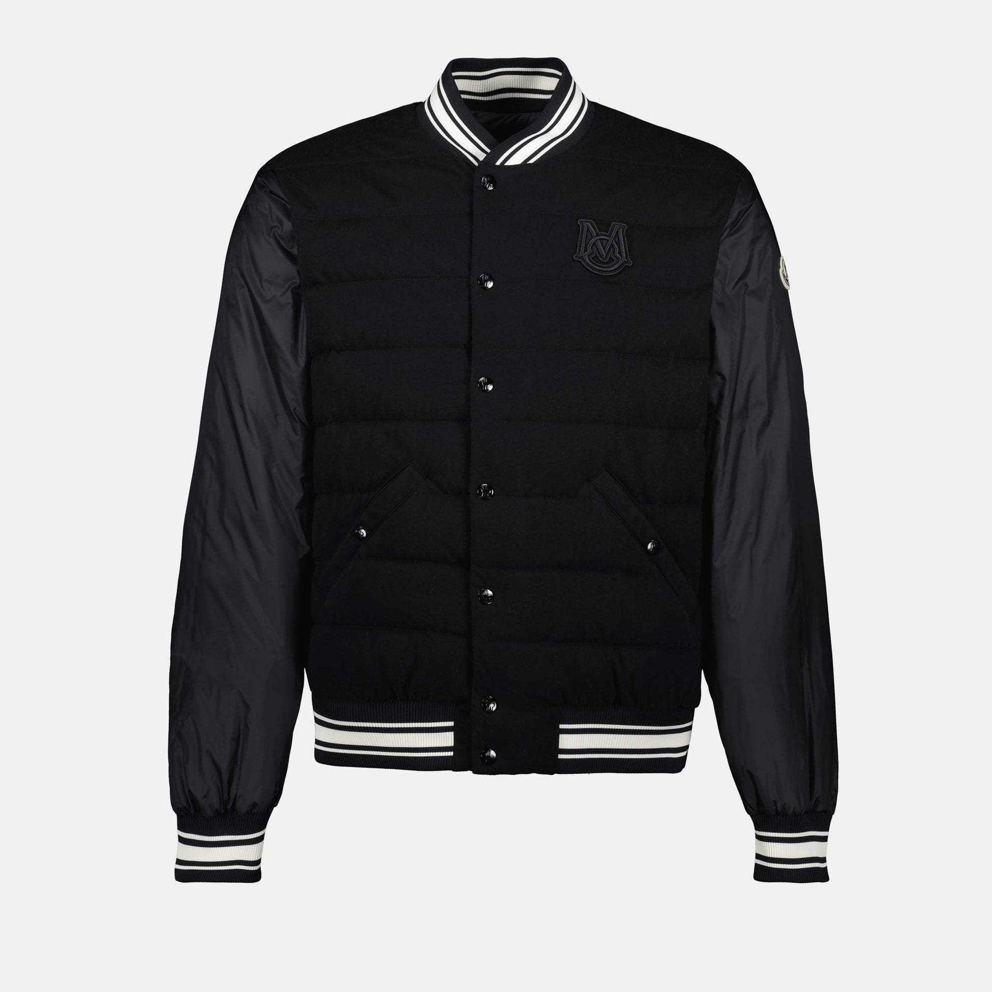 The black reversible Bouchet bomber by Moncler is a men's garment. It is part of the Spring-Summer 2025 collection and is made from a blend of wool and polyamide.