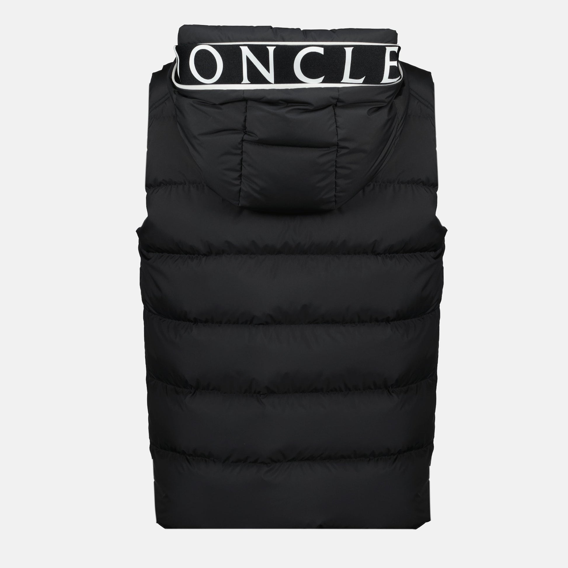 The black Cardamine sleeveless down jacket from Moncler is designed for men. It is part of the Fall-Winter 2025 collection and offers a modern and practical style.