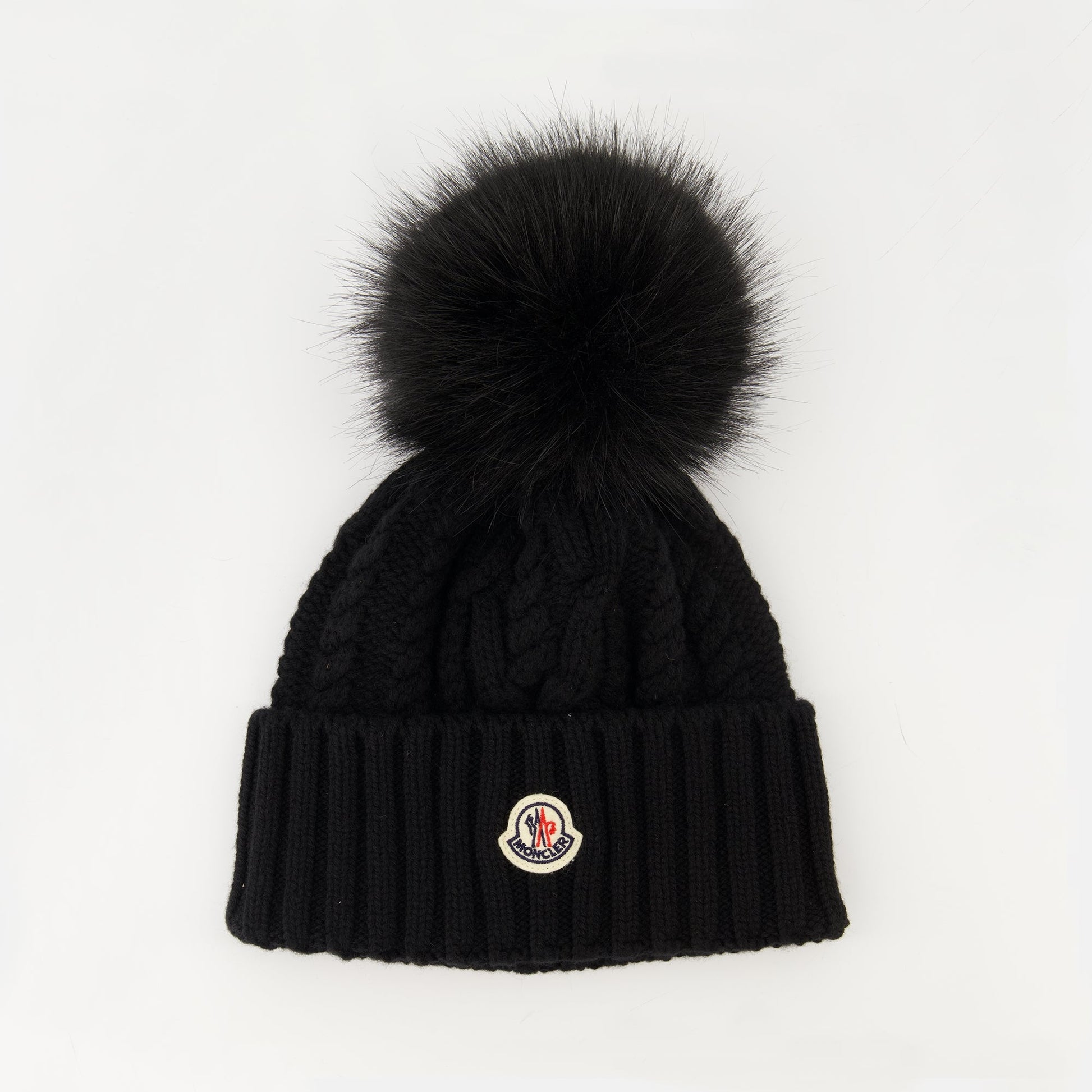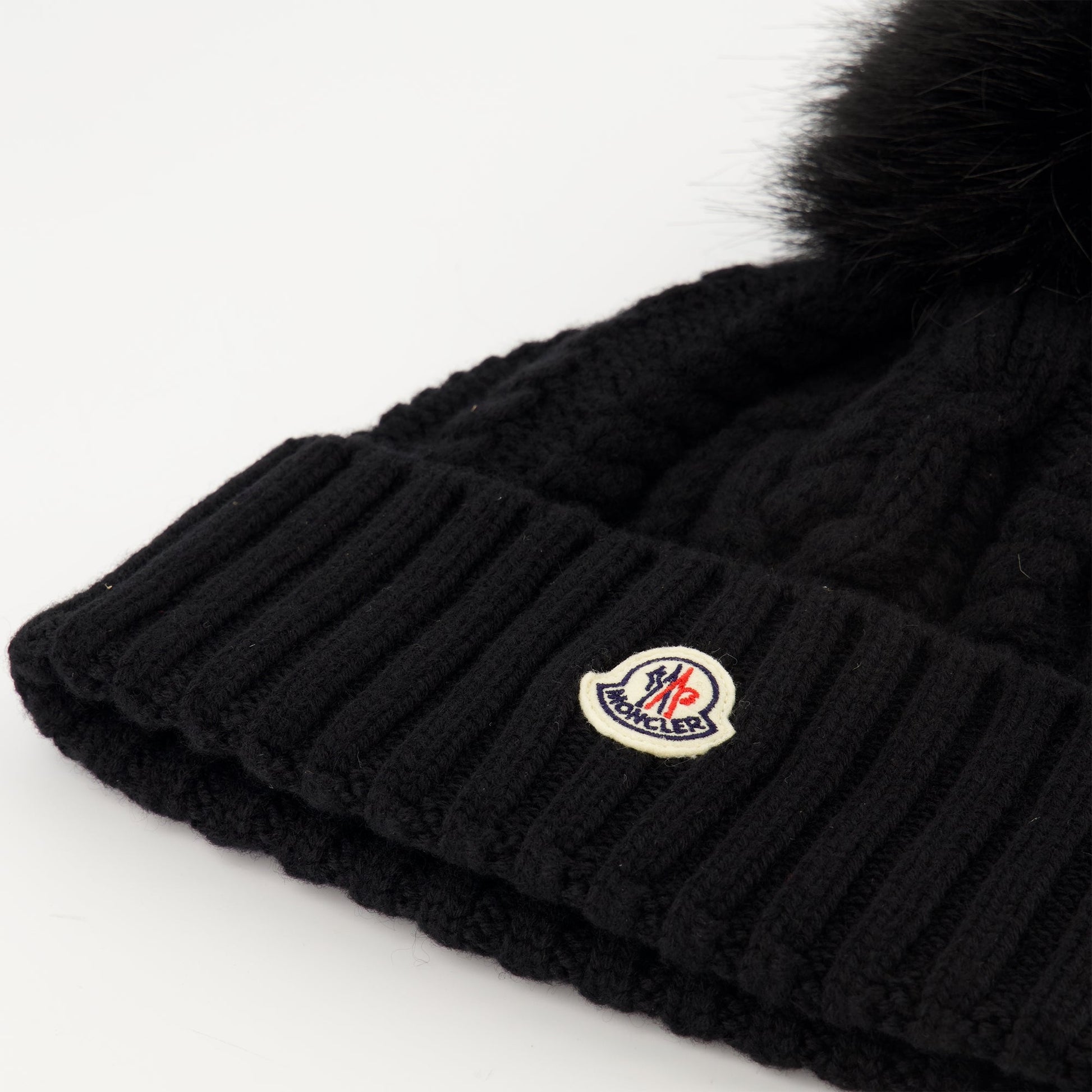 The black cashmere beanie with pom-pom from Moncler is an elegant accessory for women. Part of the Autumn-Winter 2025 collection, it combines comfort and style.