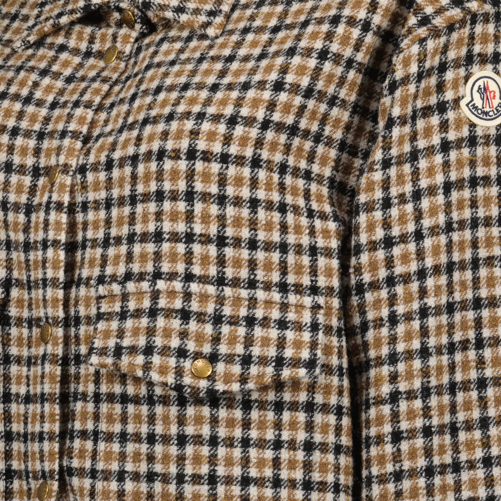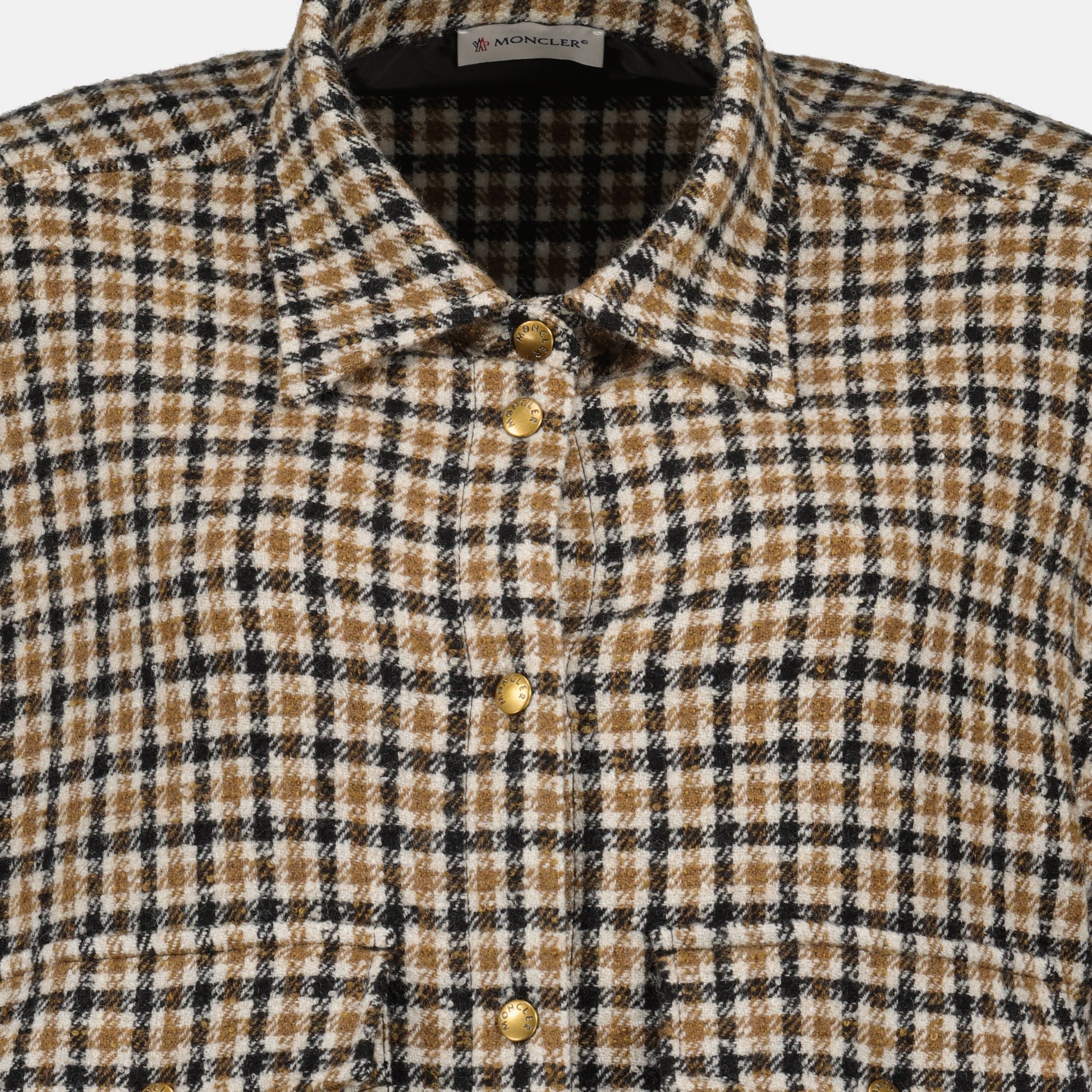 The checked shirt jacket from Moncler is made of polyamide and wool, perfect for women. It is part of the Autumn-Winter 2025 collection, combining style and comfort.