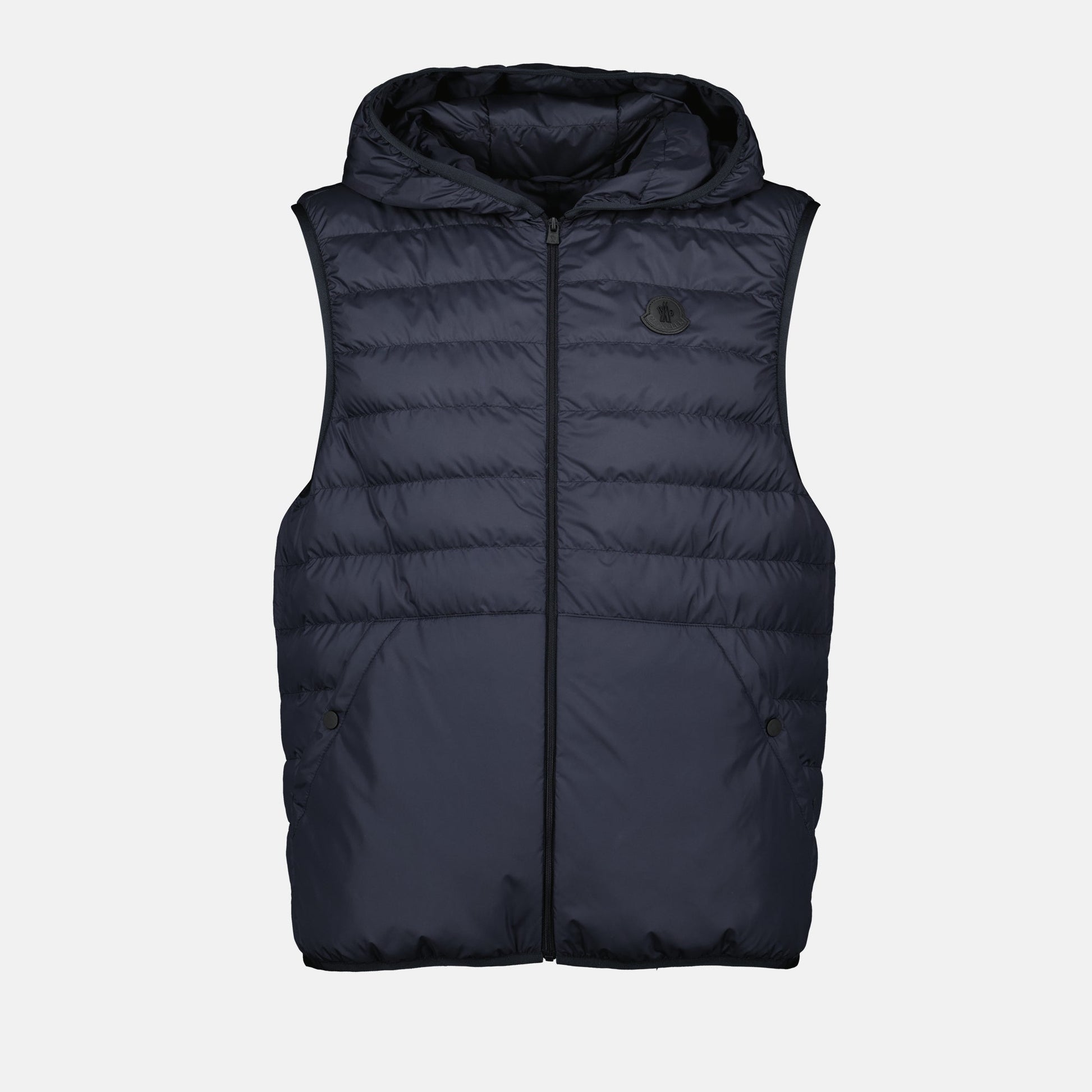 The blue Charve multi-layer windbreaker from Moncler is a men's piece from the Spring-Summer 2025 collection. It consists of a reversible windbreaker and a sleeveless padded jacket.