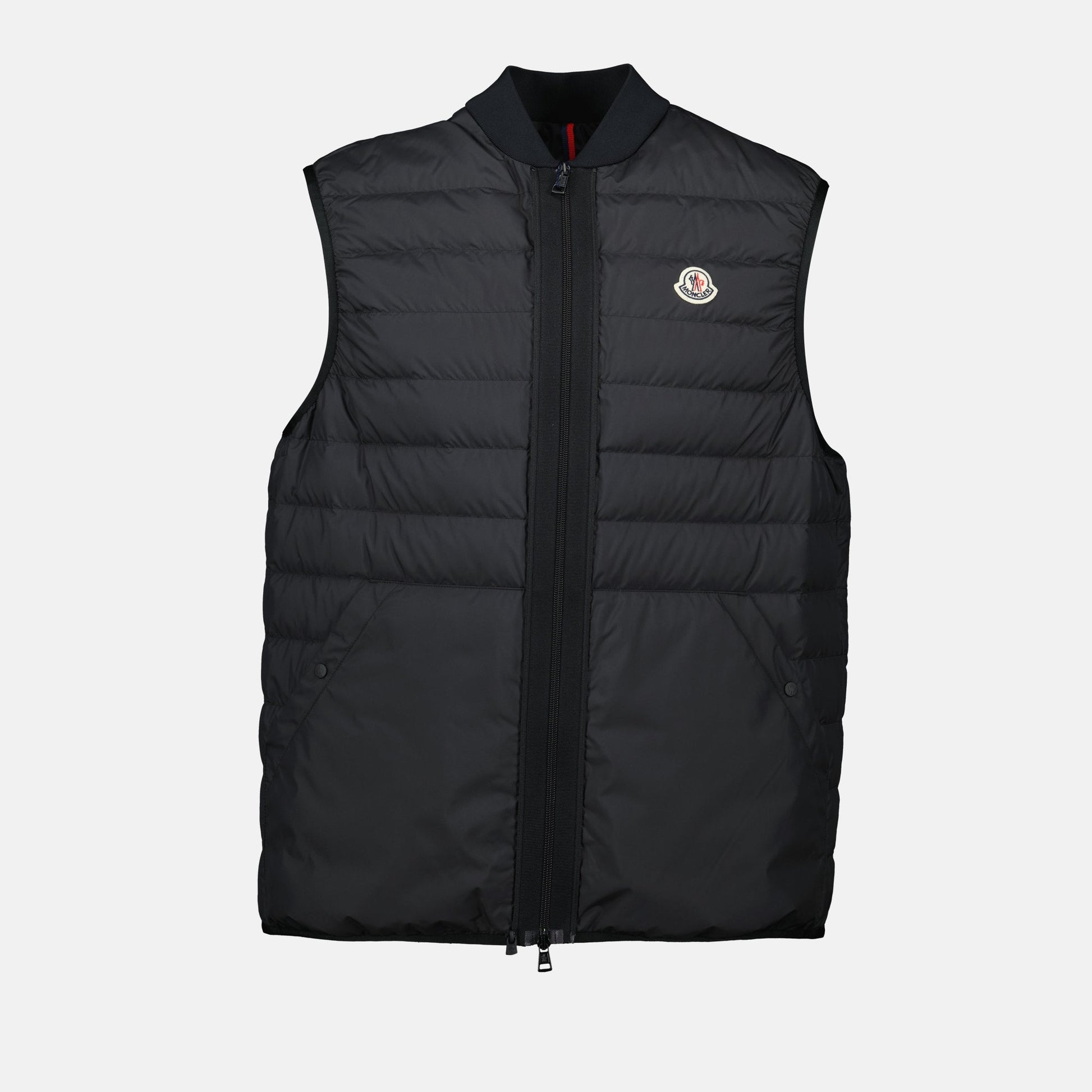 Sarrans black layered windbreaker from Moncler for men, combining a long-sleeved windbreaker with a sleeveless padded jacket. Spring-Summer 2025 collection, perfect for a modern and functional style.