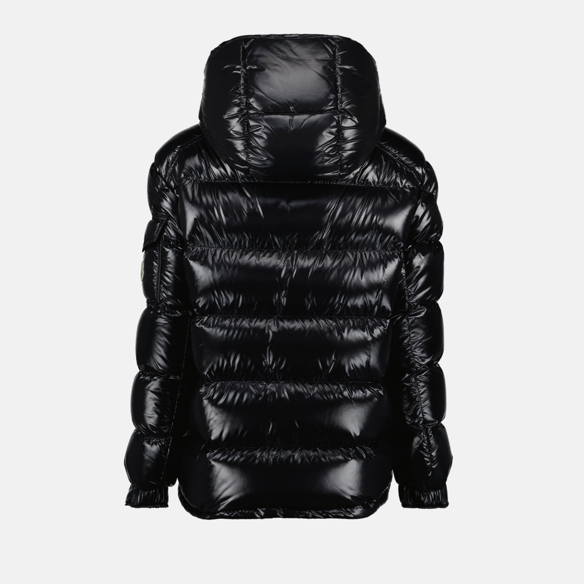 Maire black down jacket from Moncler for women, made of lacquered nylon with down padding. This piece is part of the Fall-Winter 2025 collection.