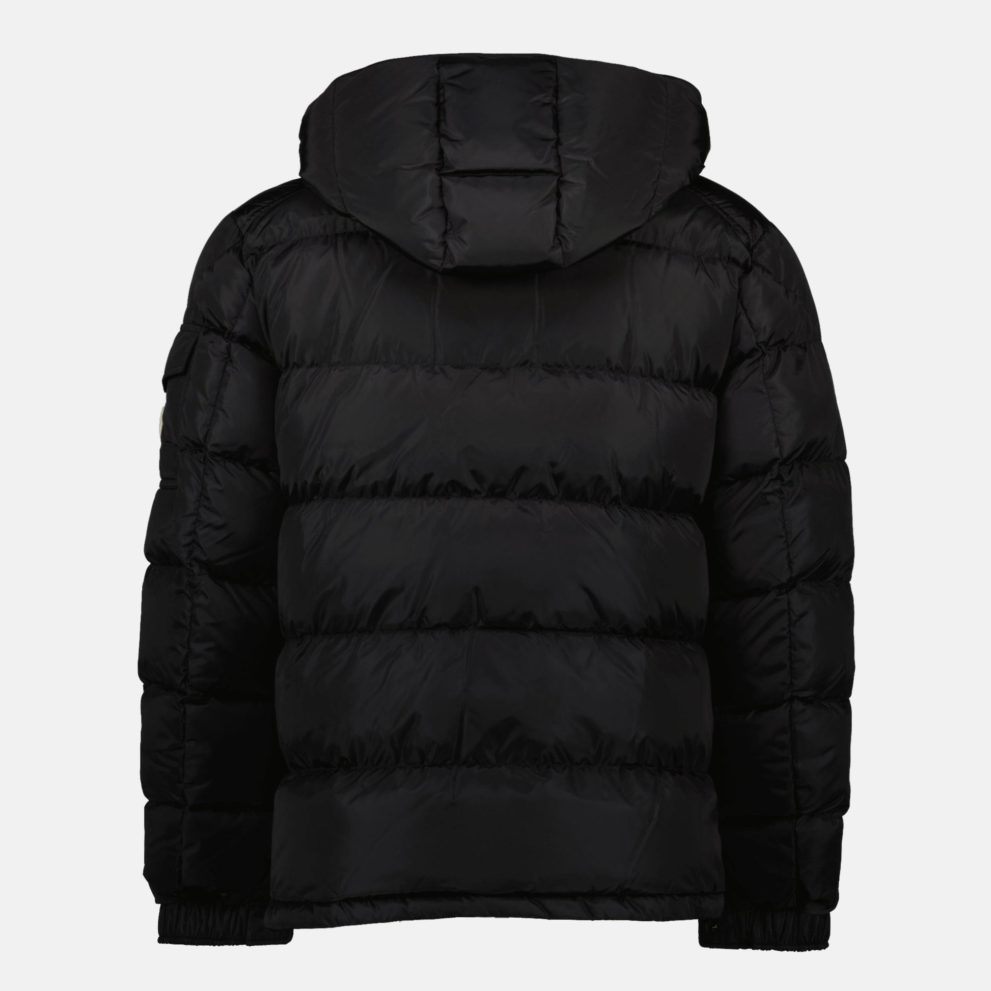 The black Maya down jacket from Moncler is an essential piece for men. It is part of the Autumn-Winter 2025 collection, combining style and comfort.