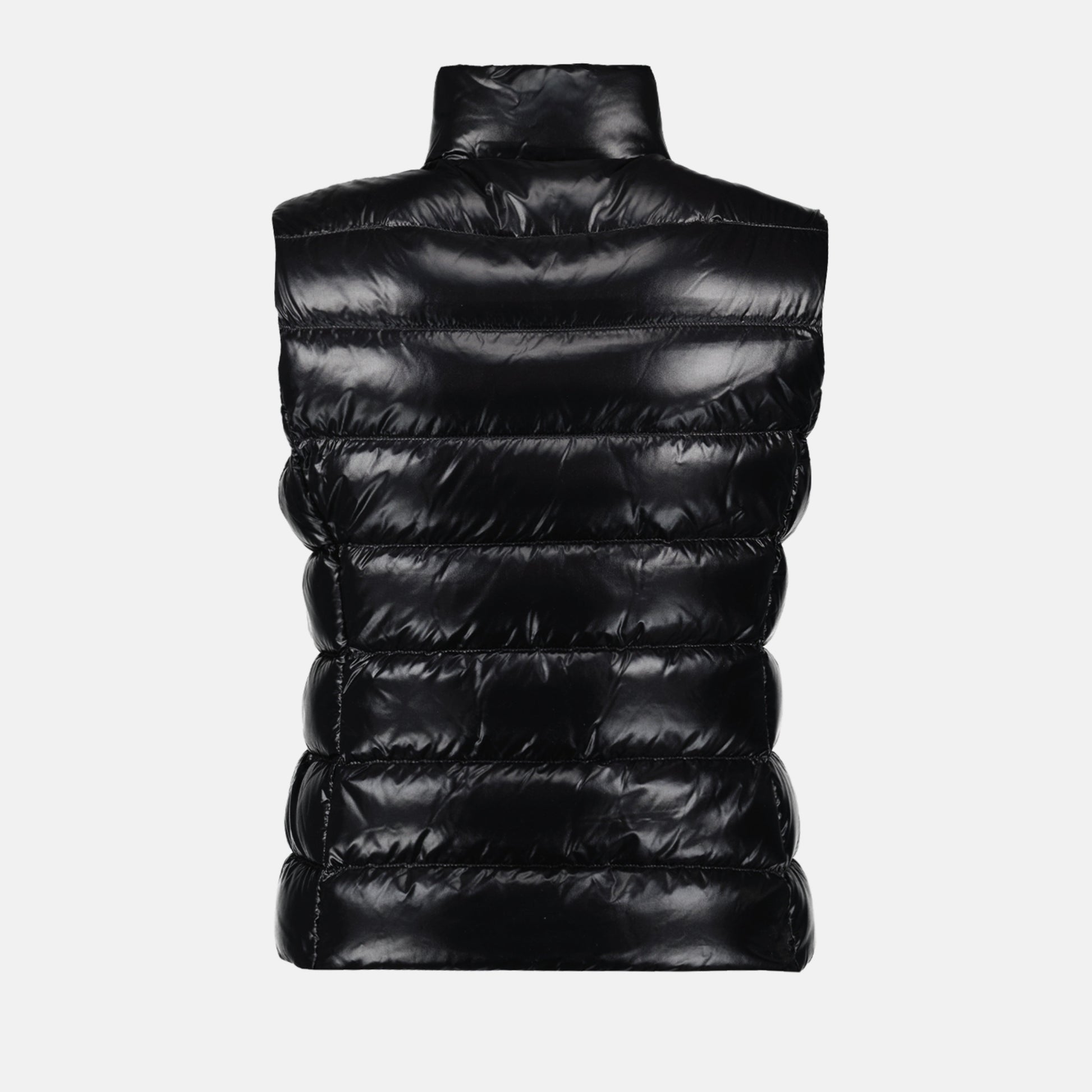 The Gany black sleeveless down jacket from Moncler is designed for women. It is part of the Autumn-Winter 2025 collection and combines style and comfort with its down filling.