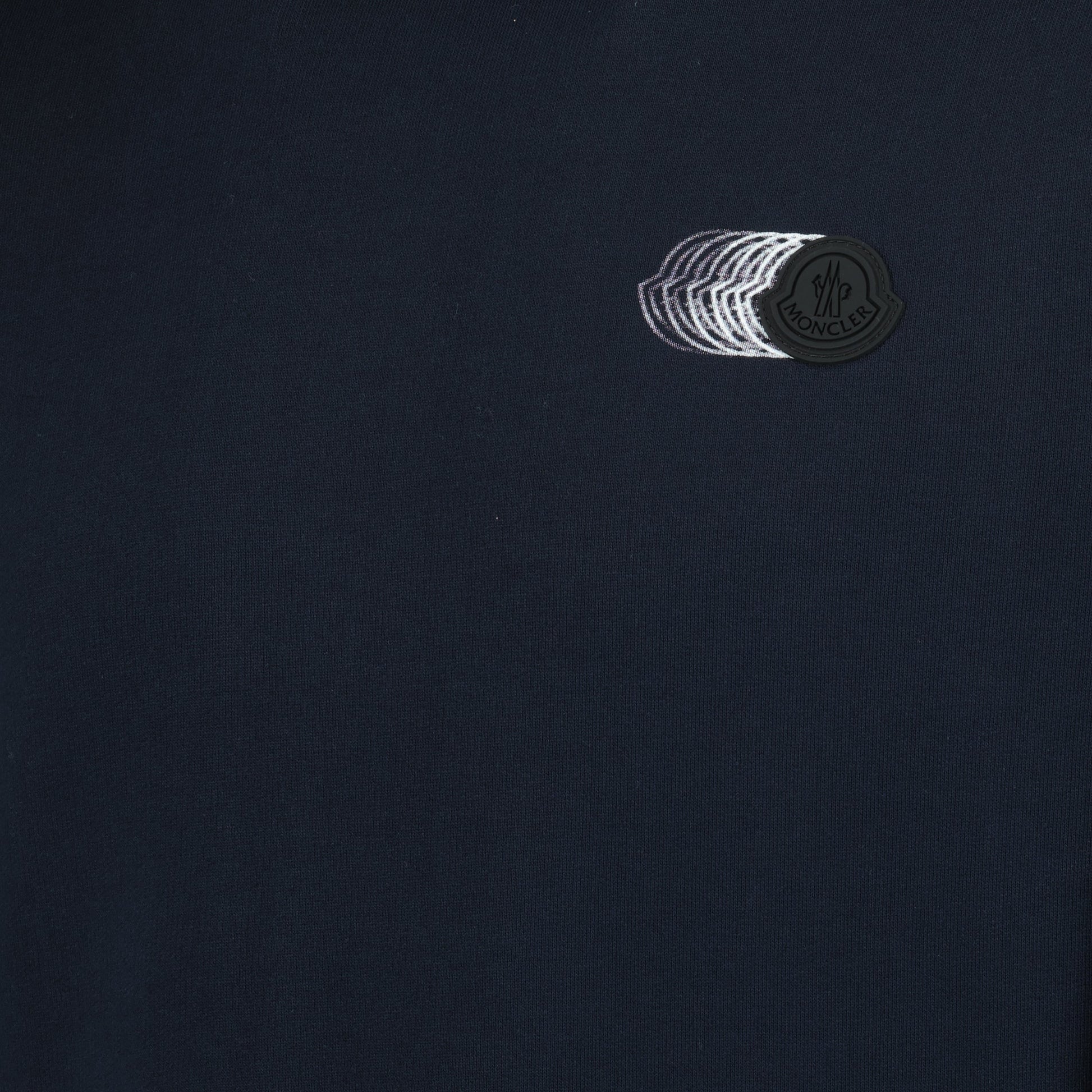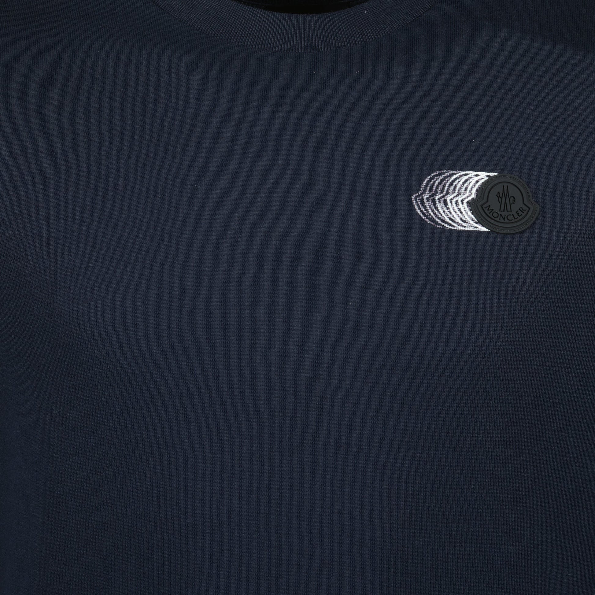 Faded navy blue logo sweatshirt from Moncler for men, part of the Spring-Summer 2025 collection. This cotton model features a round neck, long sleeves, and a leather patch logo.