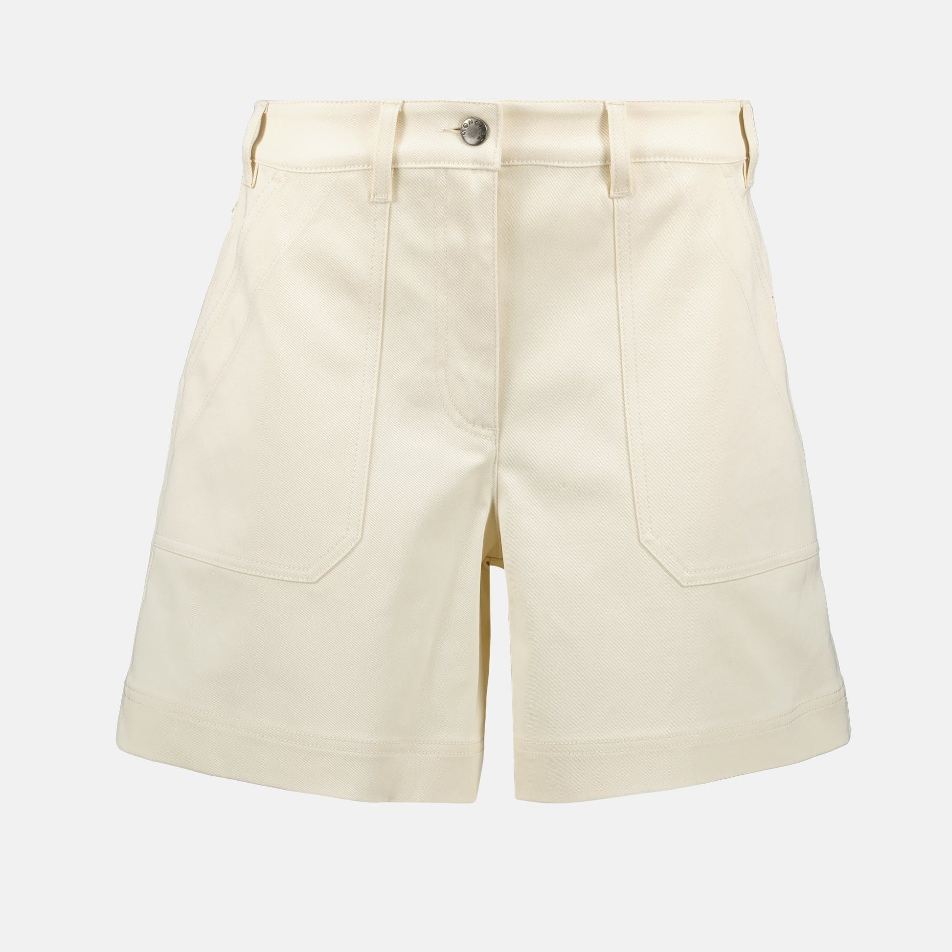 White gabardine bermuda from the brand Moncler, designed for women. This piece is part of the Spring-Summer 2025 collection and is made of cotton-elastane.