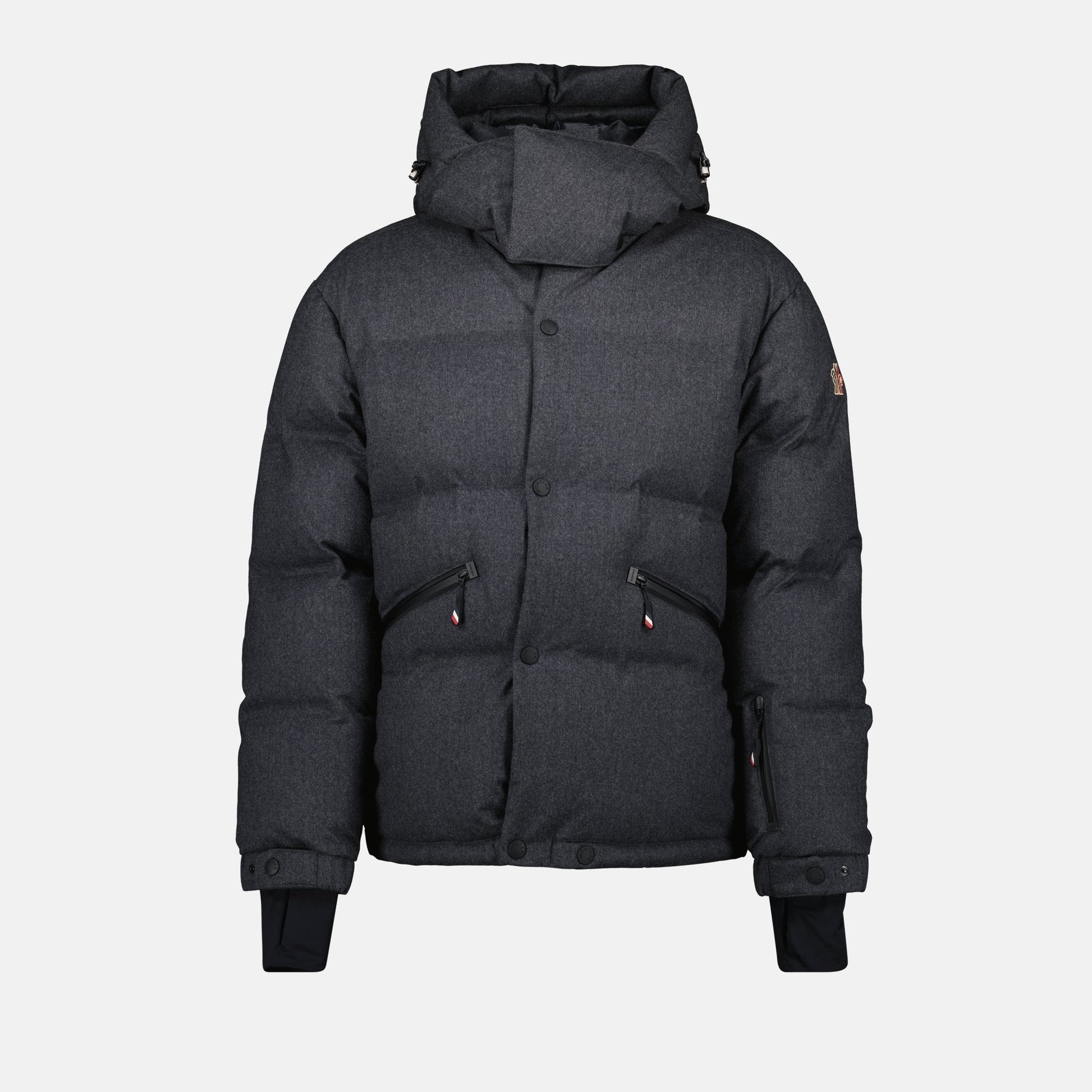The Krun down jacket in wool from Moncler Grenoble for men is an elegant piece from the Autumn-Winter 2024 collection. It combines comfort and style with its tricolor details and adjustable hood.