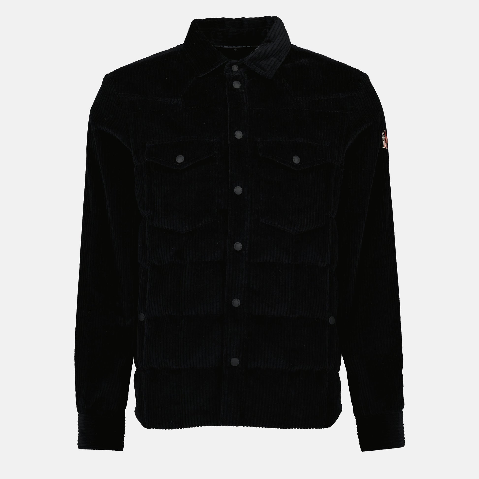 The Gelt shirt jacket in velvet from Moncler Grenoble, for men, combines elegance and comfort with its quilted design and refined details. This piece is part of the Fall-Winter 2025 collection.
