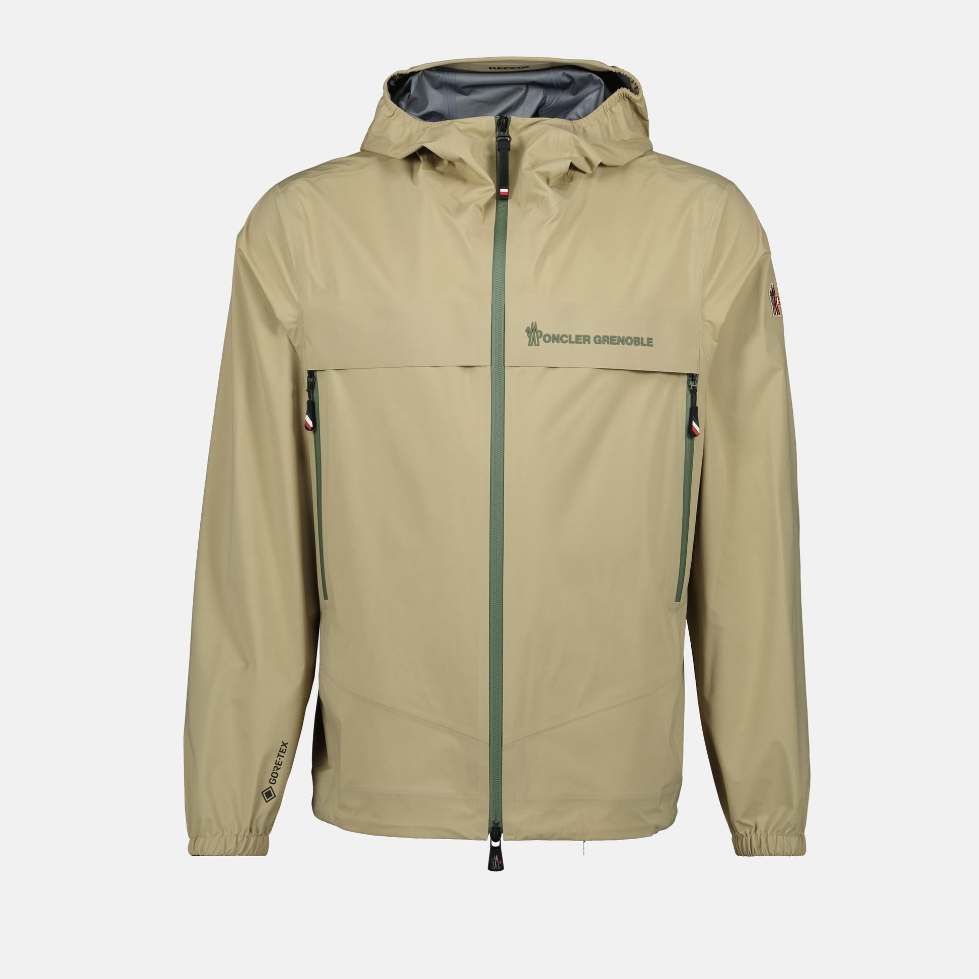 The beige Shipton waterproof jacket from Moncler Grenoble is designed for men. It is part of the Spring-Summer 2025 collection and is made of water-repellent nylon with advanced technical details.