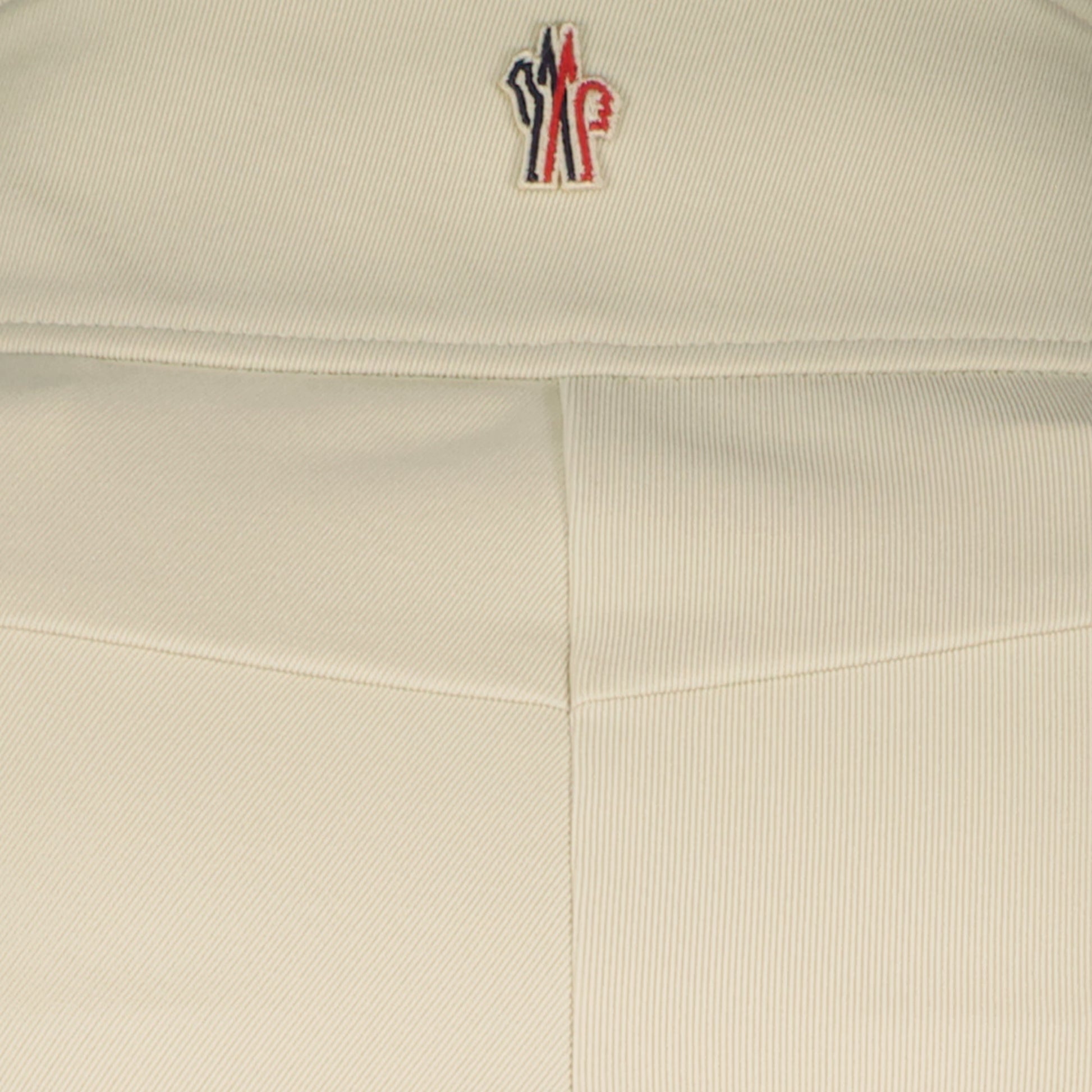 Beige ski pants from Moncler Grenoble for women from the Autumn-Winter 2024 collection. This slim model in polyamide and elastane features zipped pockets and an embroidered logo.