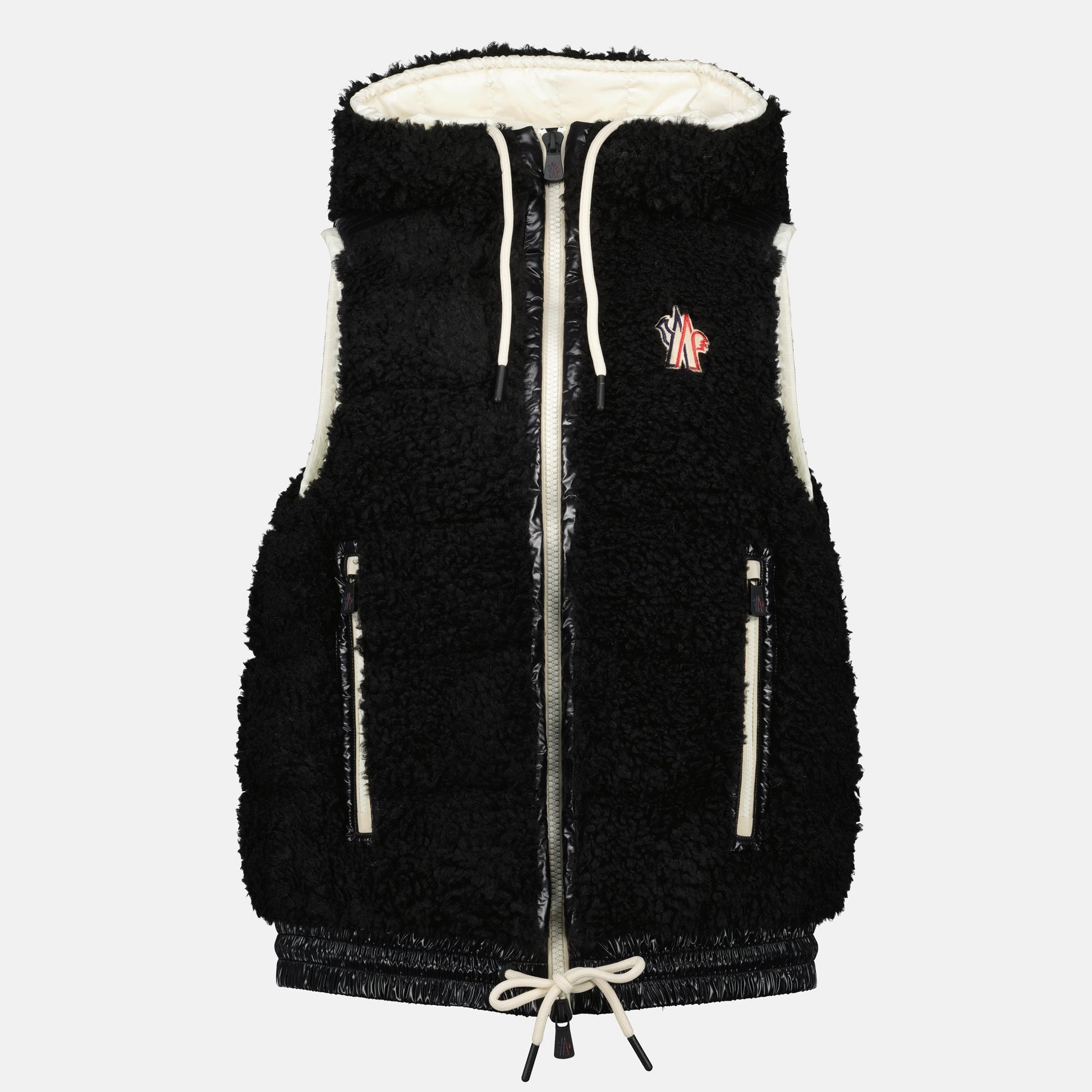 The sleeveless padded jacket from Moncler Grenoble, in black, is designed for women. It is part of the Autumn-Winter 2025 collection and offers a modern and comfortable style.