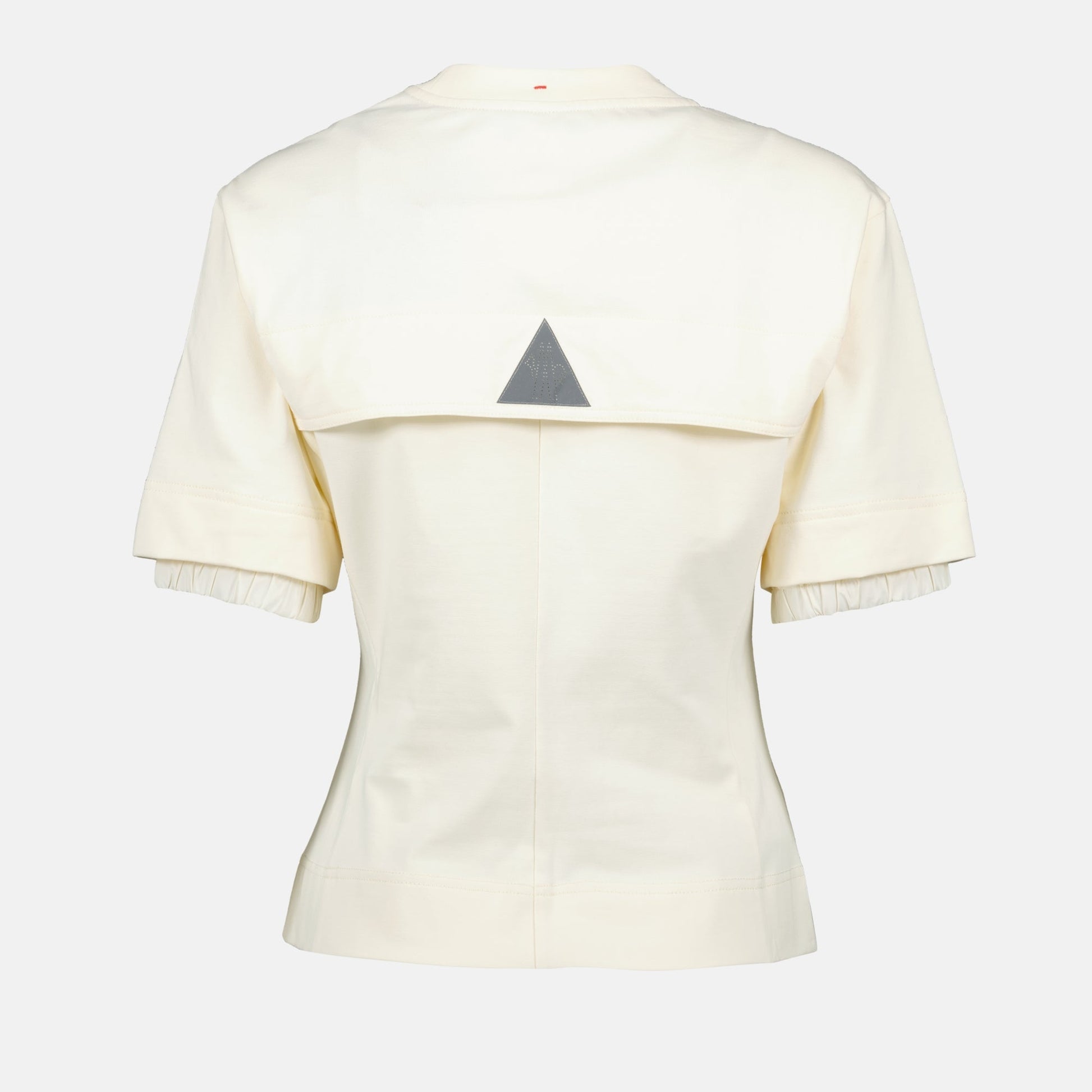 Beige logo T-shirt from Moncler Grenoble for women, made of cotton jersey with felt details. This model is part of the Spring-Summer 2025 collection.