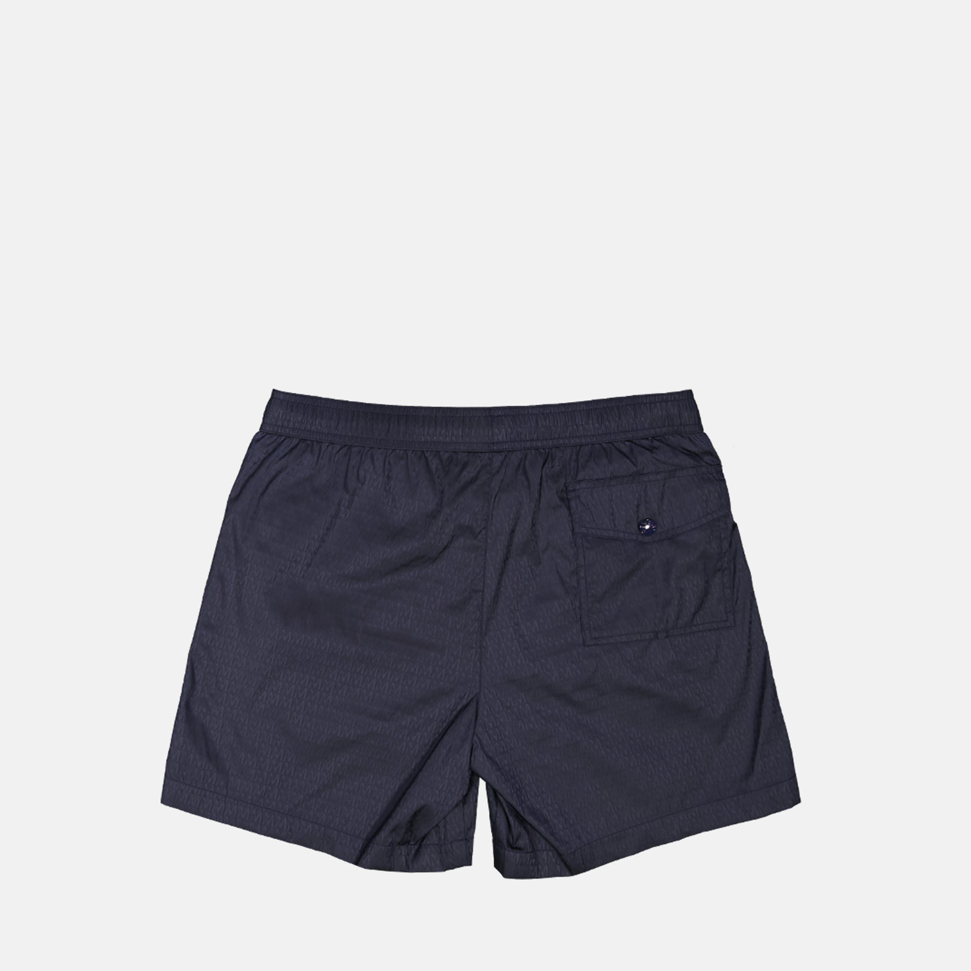 Monogram blue navy swim trunks from Moncler for men from the Spring-Summer 2025 collection. Made of polyamide, it features a tone-on-tone monogram pattern and an elastic waistband.