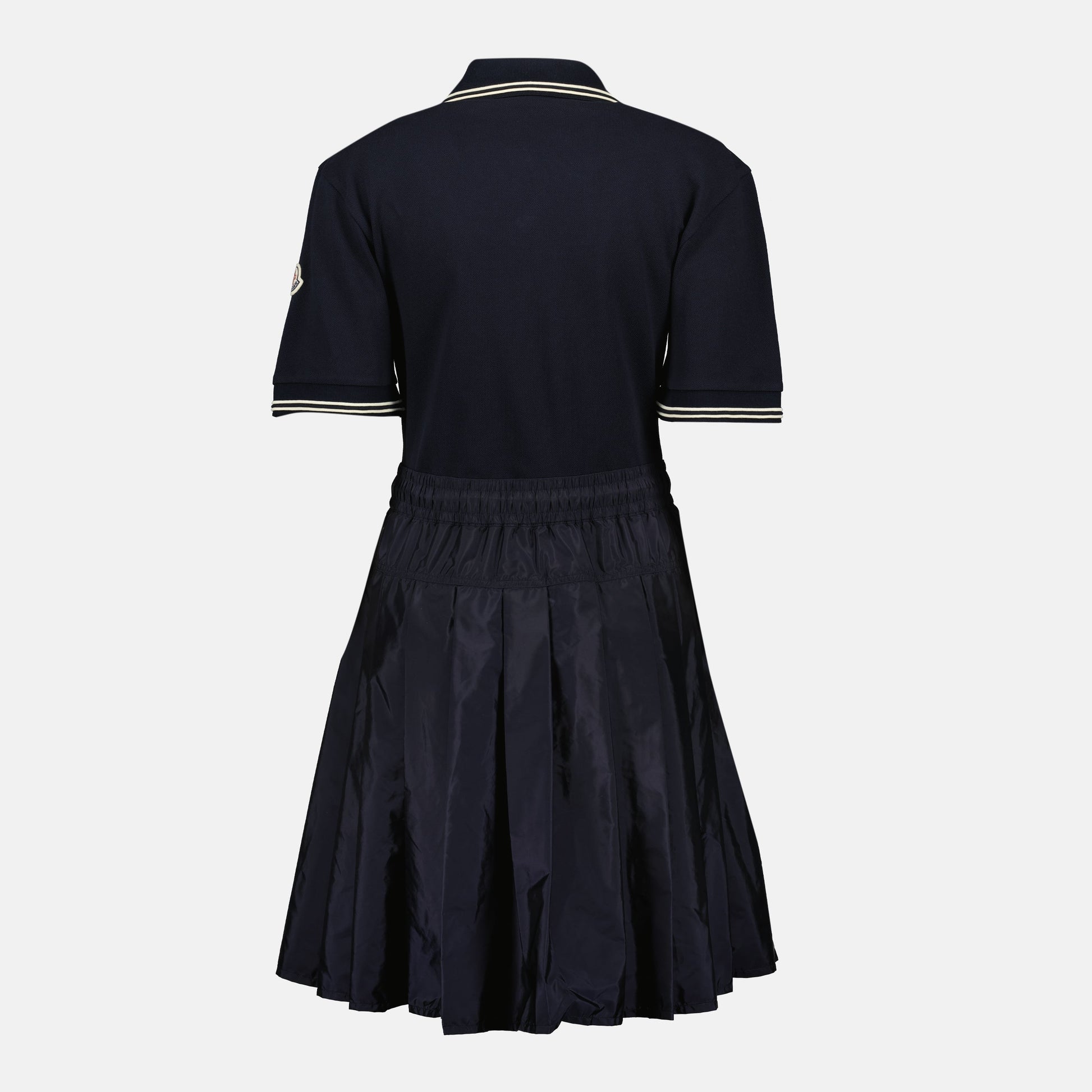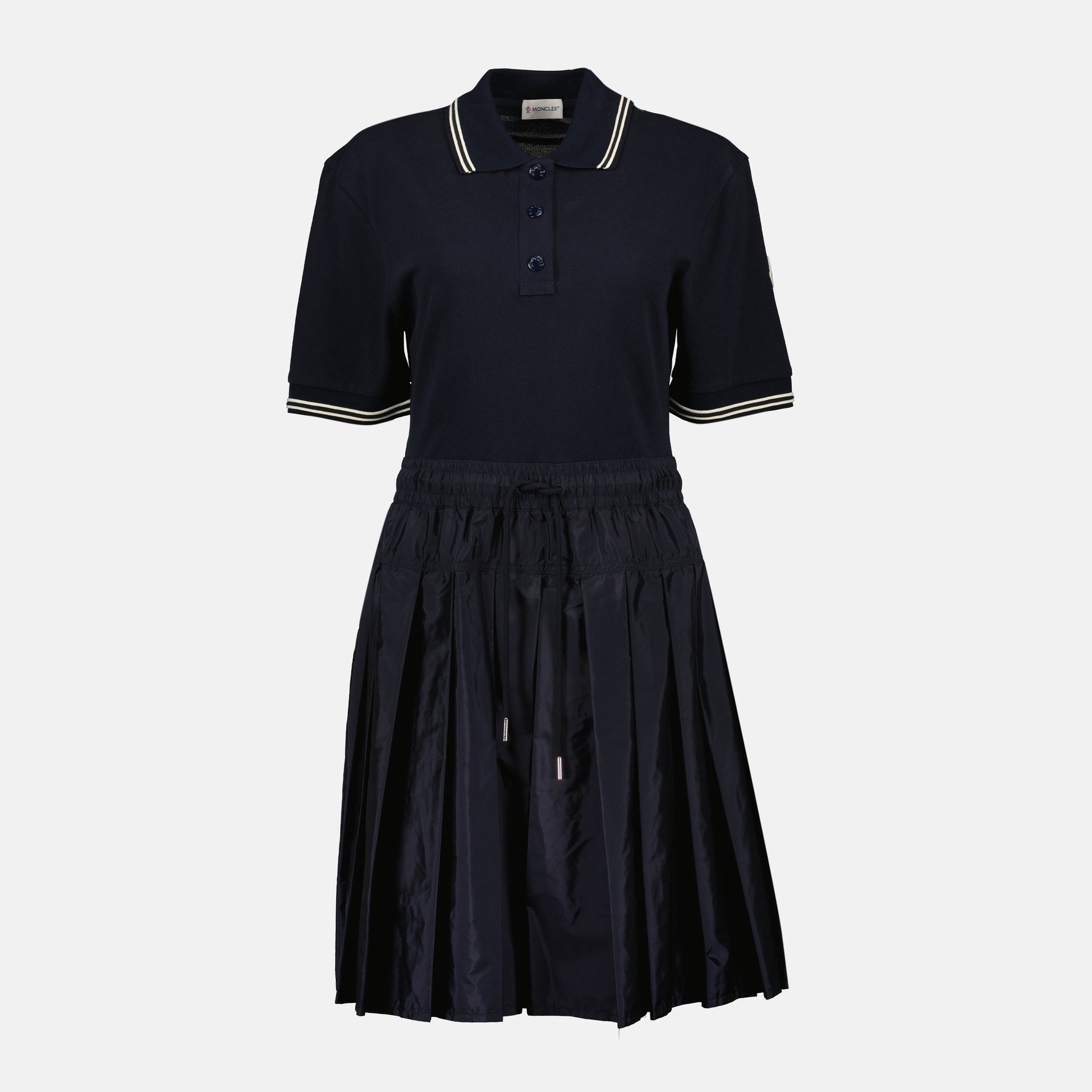 Navy blue polo dress from Moncler for women from the Autumn-Winter 2025 collection. Made of cotton and nylon, it features a classic collar and a midi cut with contrasting details.