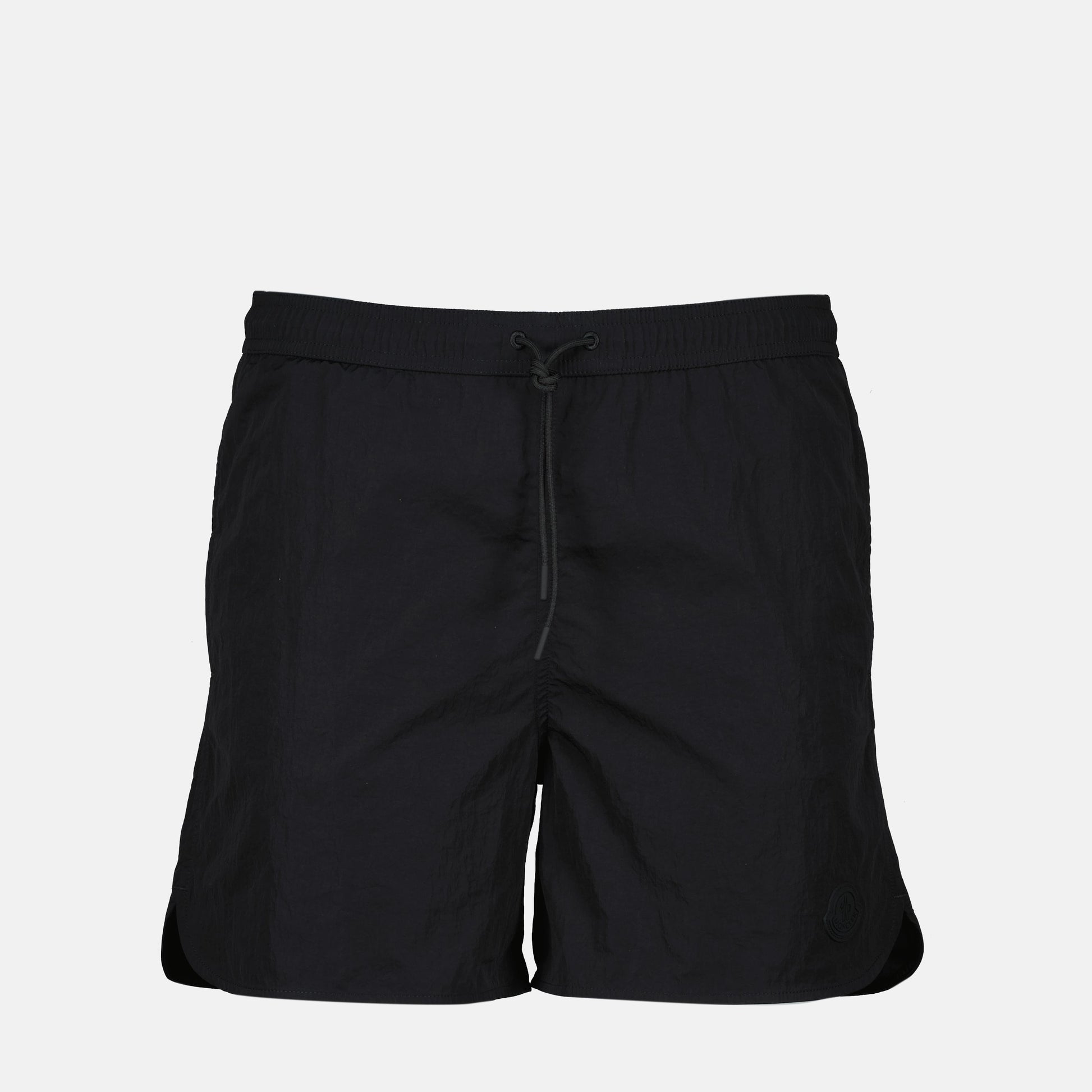 Black swimwear from Moncler for men, made from recycled nylon. This piece is part of the Spring-Summer 2025 collection and offers a modern style with functional details.